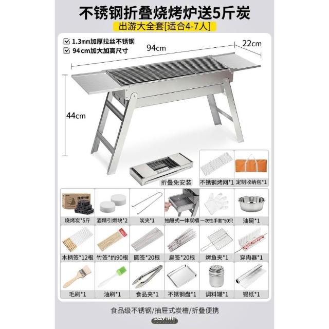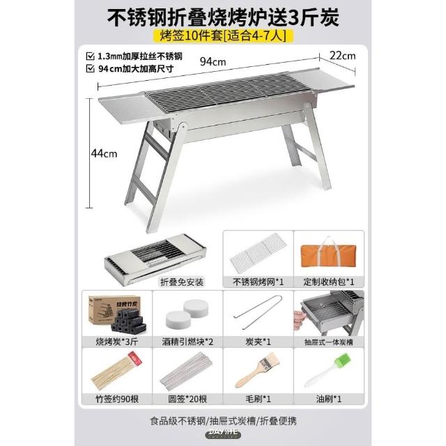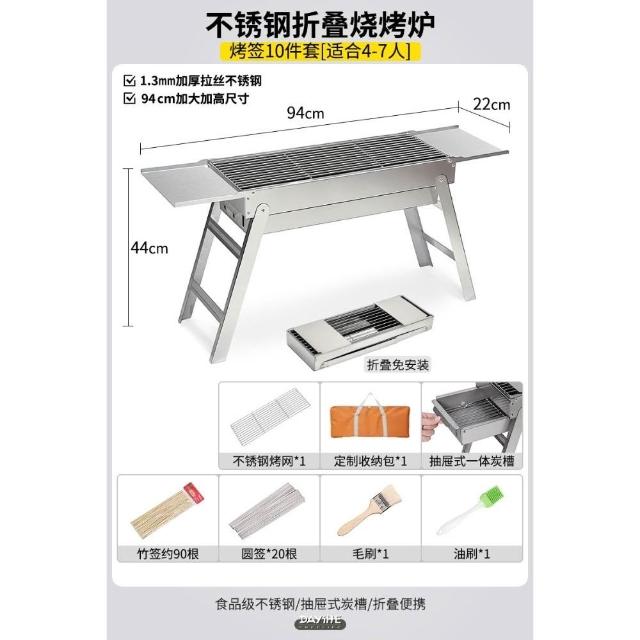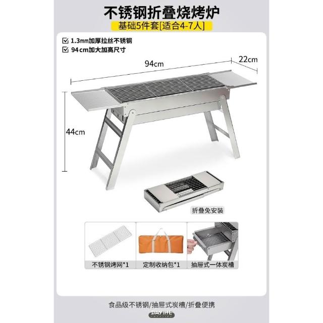 加厚不銹鋼燒烤爐家用戶外可攜式折疊燒烤架木炭燒烤肉爐燒烤爐子