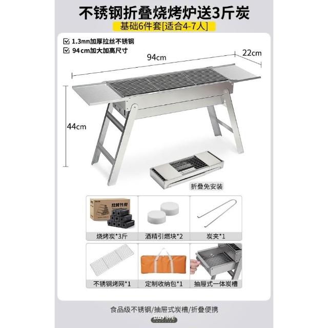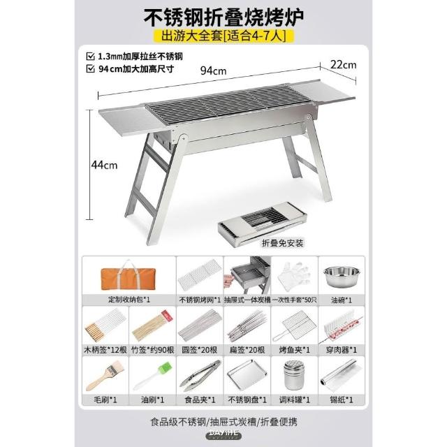 加厚不銹鋼燒烤爐家用戶外可攜式折疊燒烤架木炭燒烤肉爐燒烤爐子