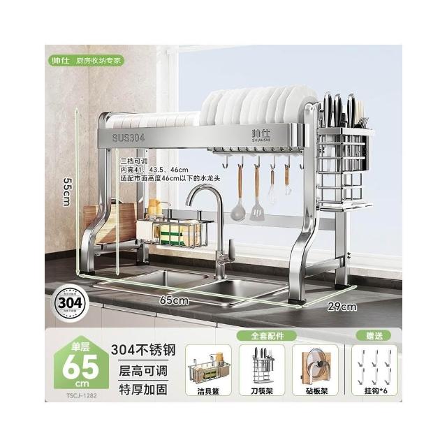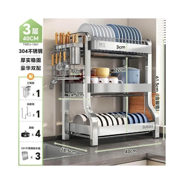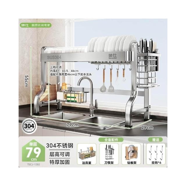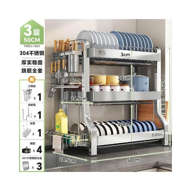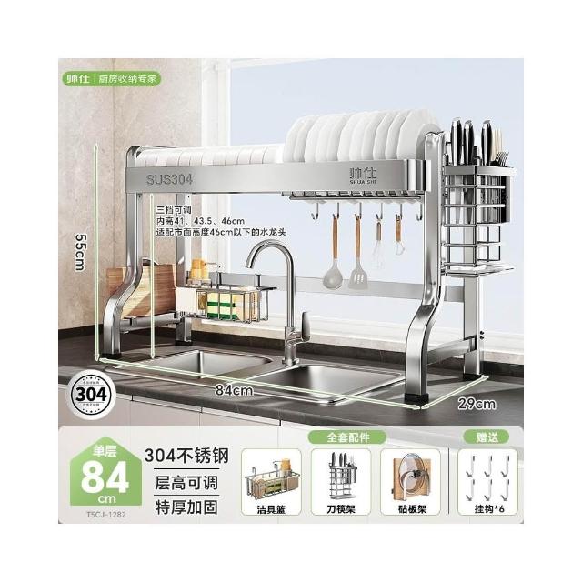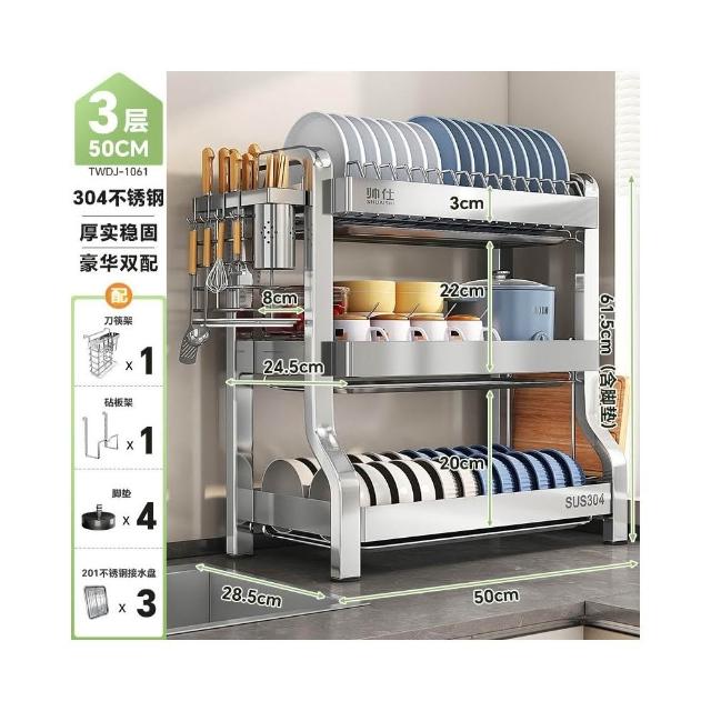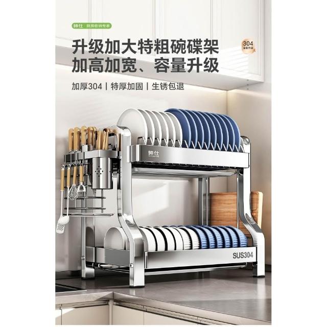 帥仕304不銹鋼碗碟收納架廚房多功能置物架新款碗盤架臺面瀝水架