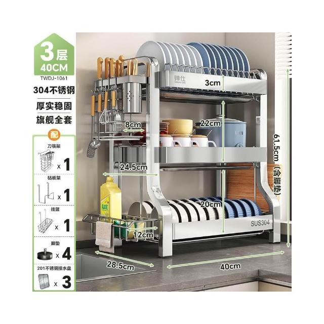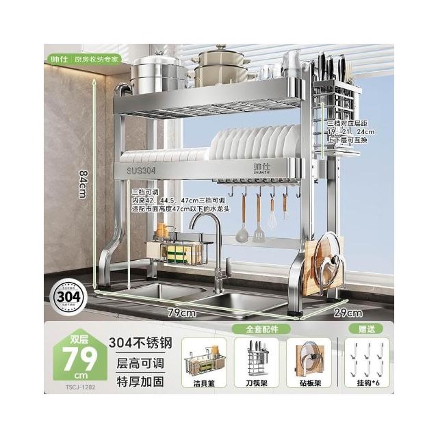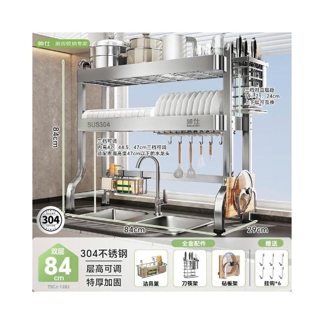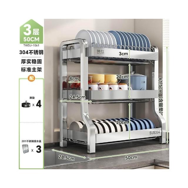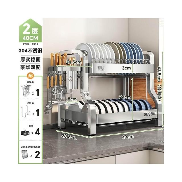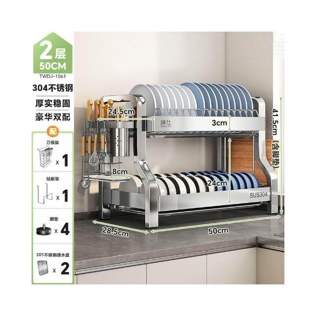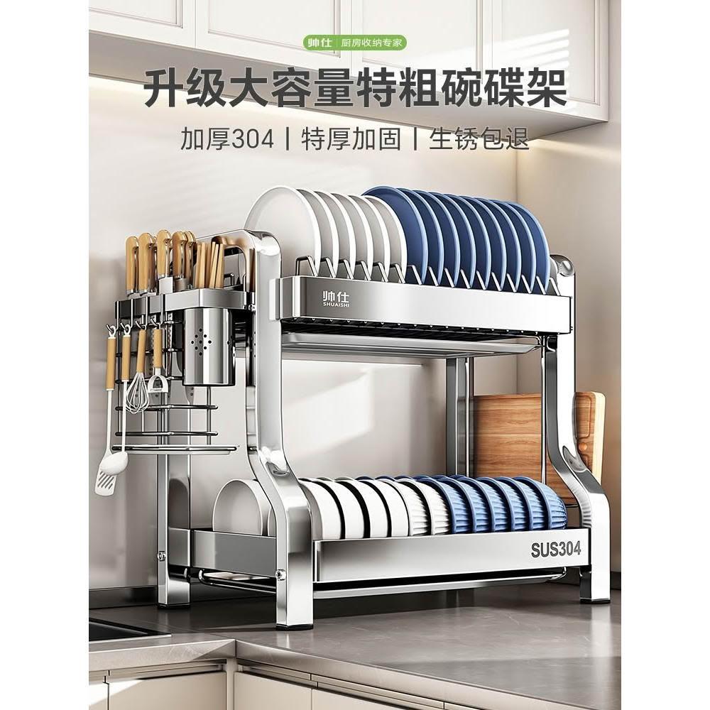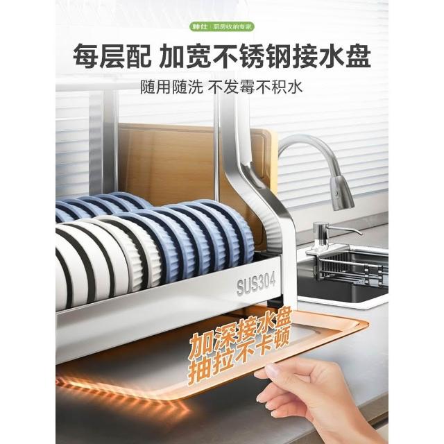 帥仕304不銹鋼碗碟收納架廚房多功能置物架新款碗盤架臺面瀝水架