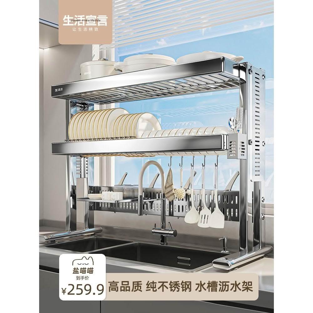 304不銹鋼廚房水槽置物架水池洗碗槽放碟盤筷筒收納瀝水架子