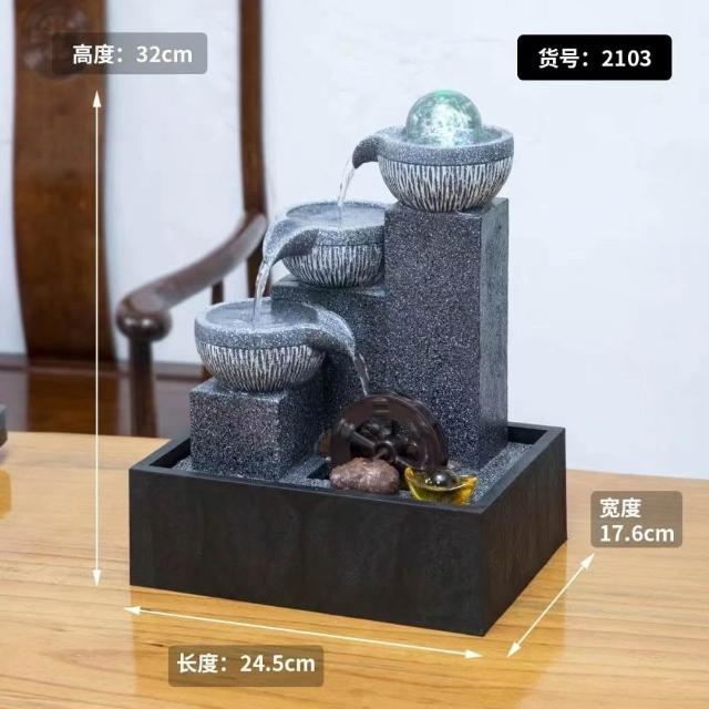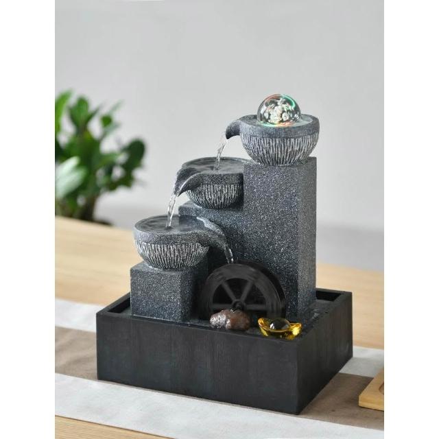 小型風水輪流水車轉動噴泉加濕器客廳家居桌面設迴圈水流裝飾擺件