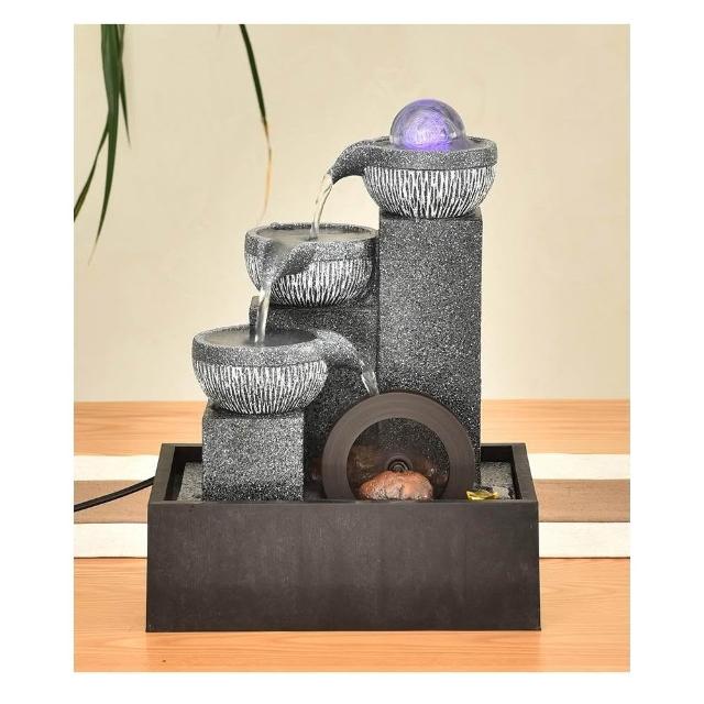 小型風水輪流水車轉動噴泉加濕器客廳家居桌面設迴圈水流裝飾擺件