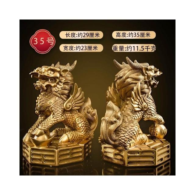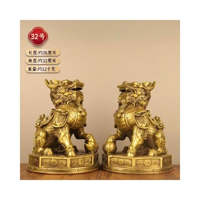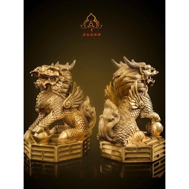 銅麒麟擺件公母一對純黃銅鎮宅招財麒麟八卦辦公室客廳喬遷裝飾品