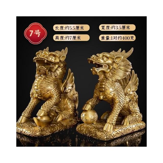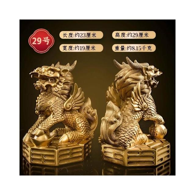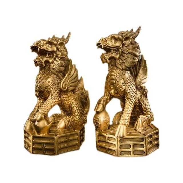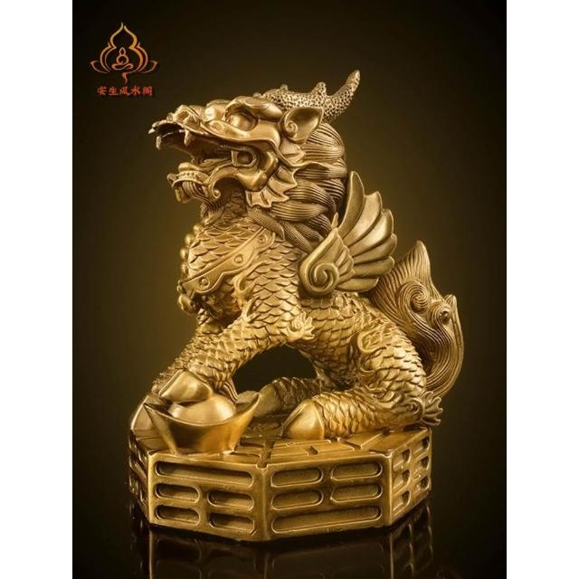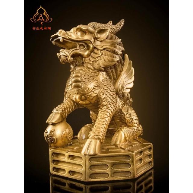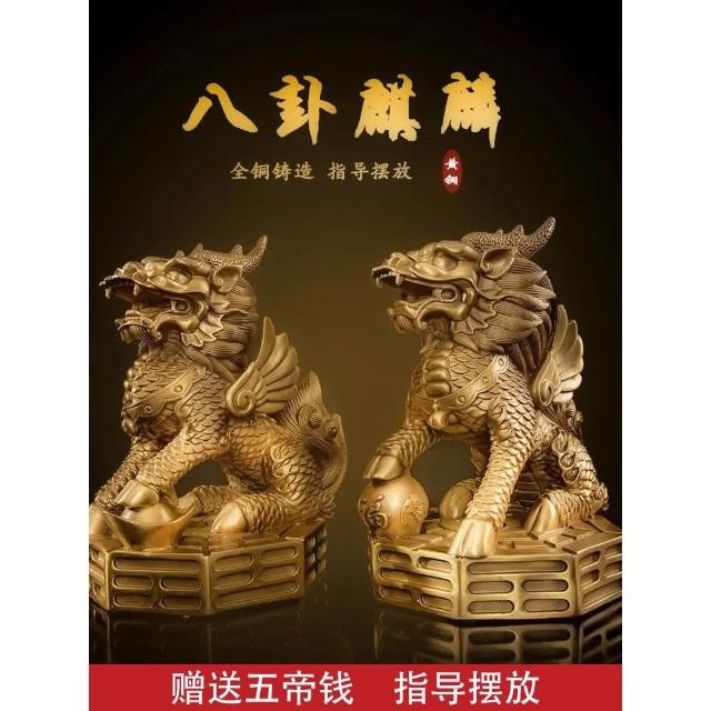 銅麒麟擺件公母一對純黃銅鎮宅招財麒麟八卦辦公室客廳喬遷裝飾品