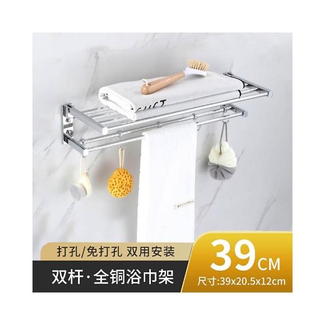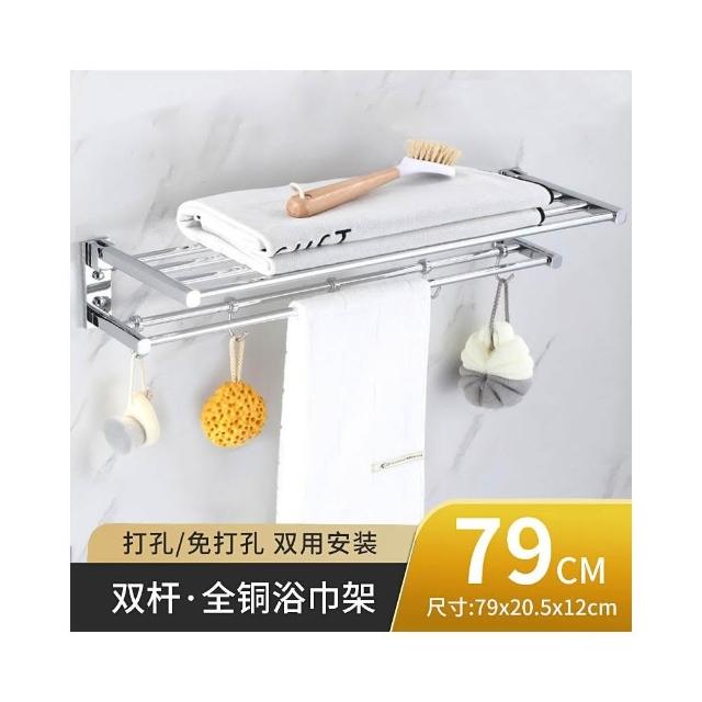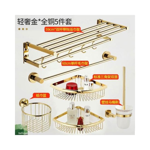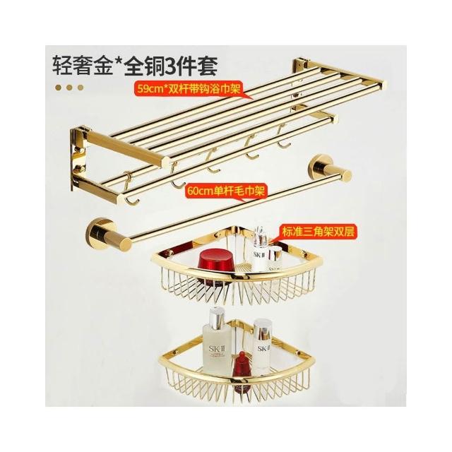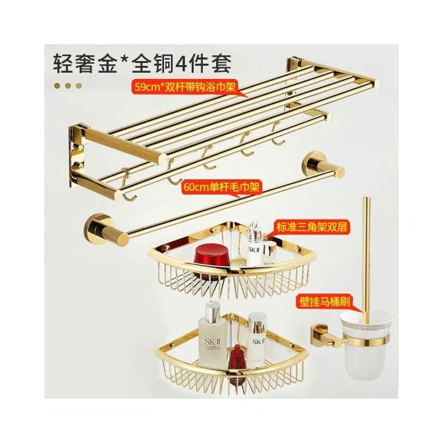 全銅毛巾架衛生間收納浴室置物架免打孔法式金色衛浴五金掛浴巾架