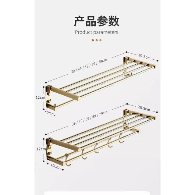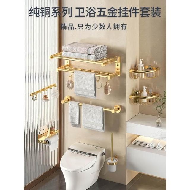 全銅毛巾架衛生間收納浴室置物架免打孔法式金色衛浴五金掛浴巾架