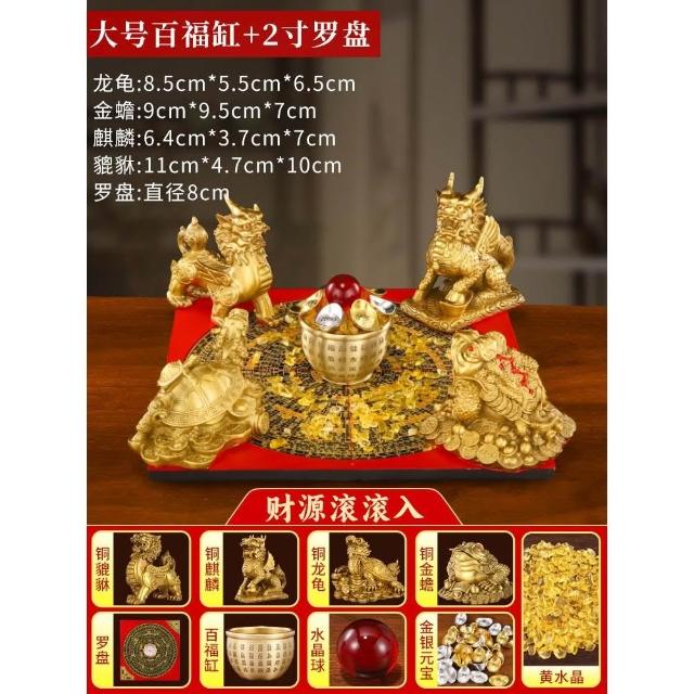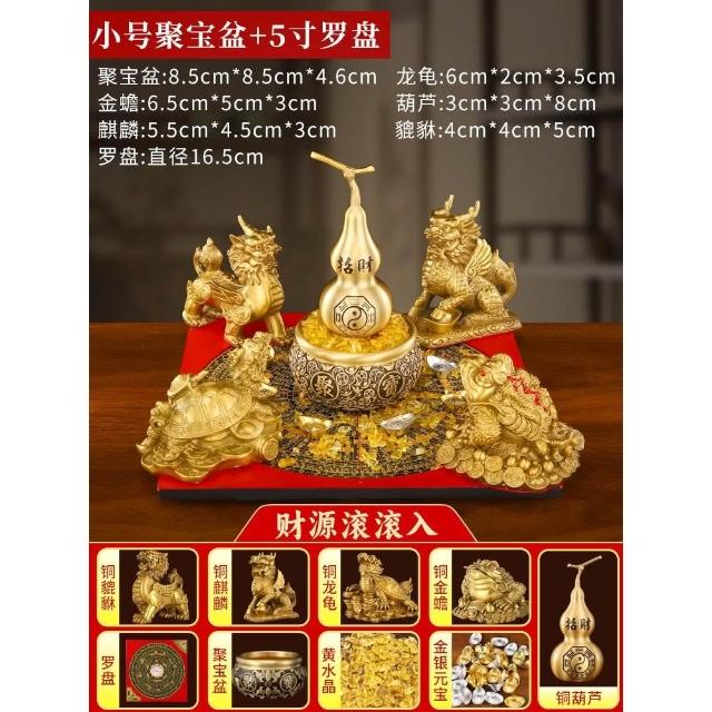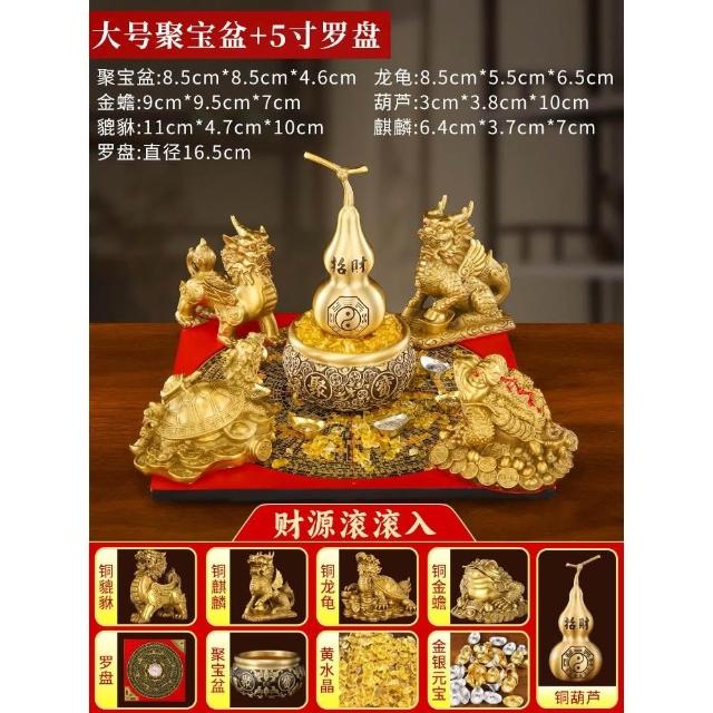 招財聚財陣銅葫蘆龍龜金蟾貔貅聚寶盆銅麒麟羅盤風水擺件百福米缸
