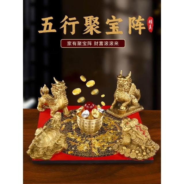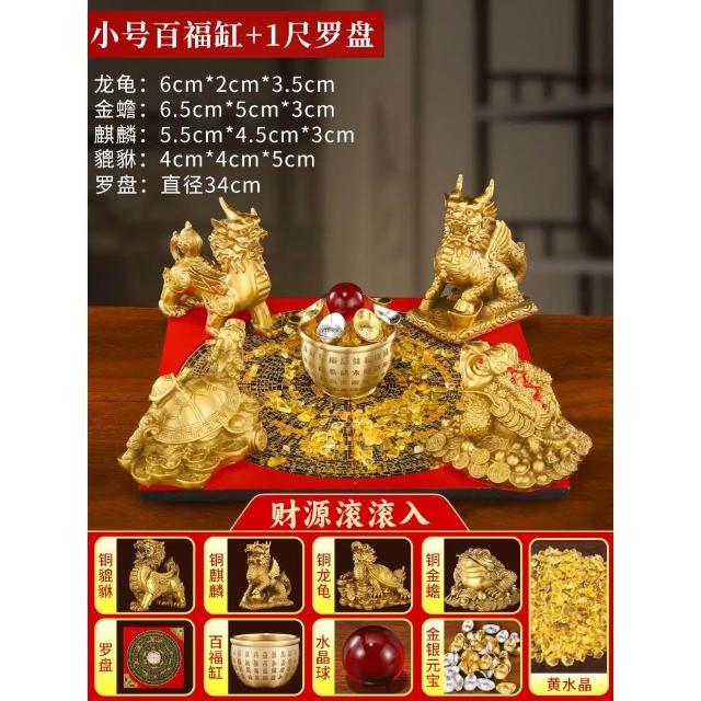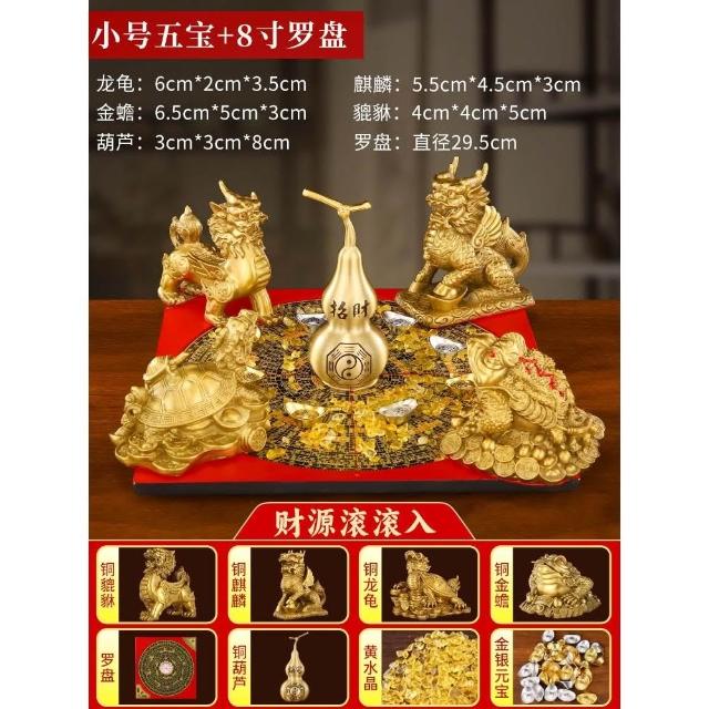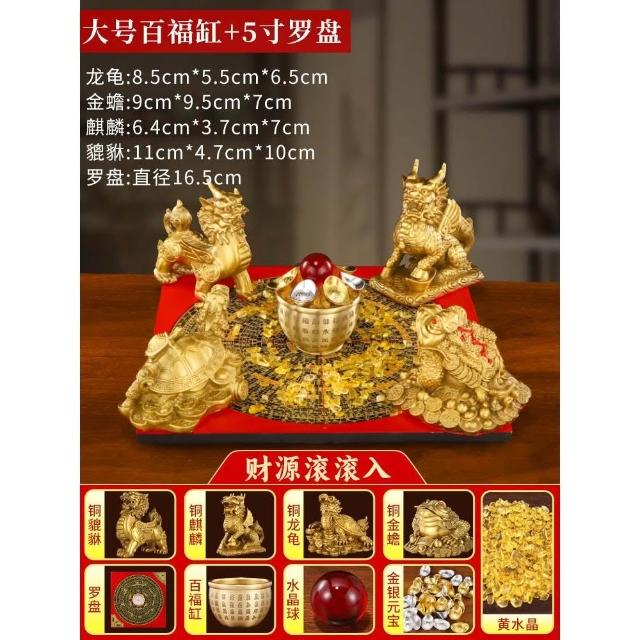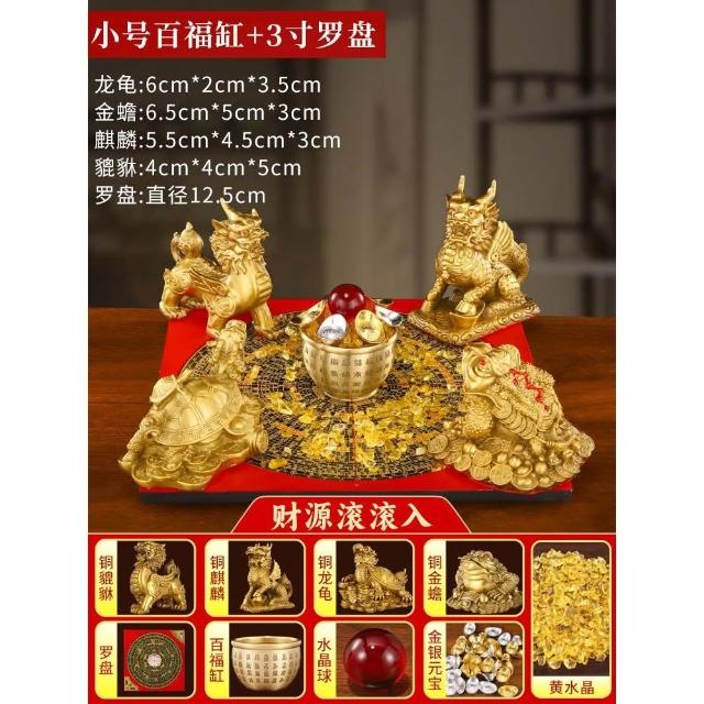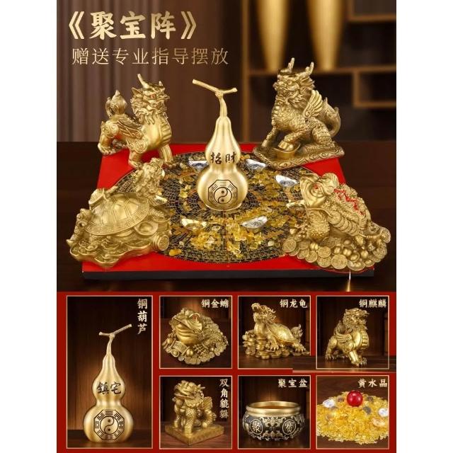 招財聚財陣銅葫蘆龍龜金蟾貔貅聚寶盆銅麒麟羅盤風水擺件百福米缸