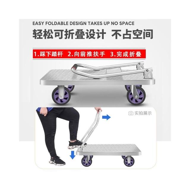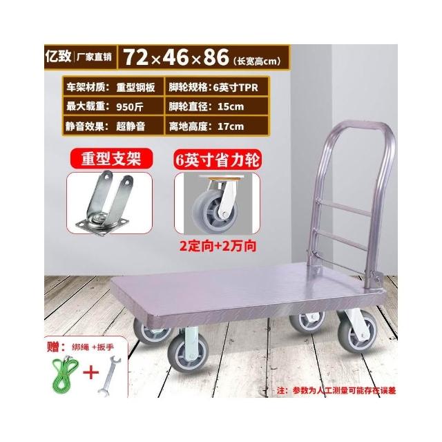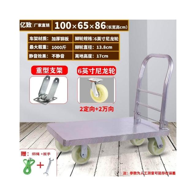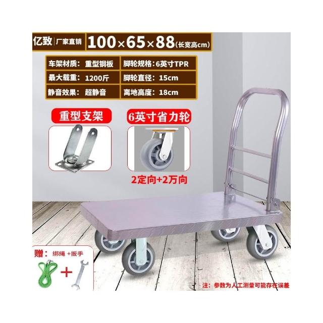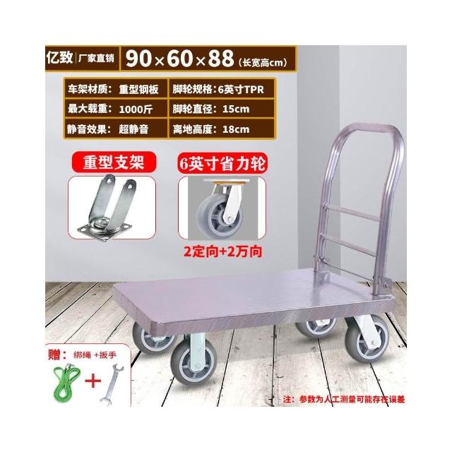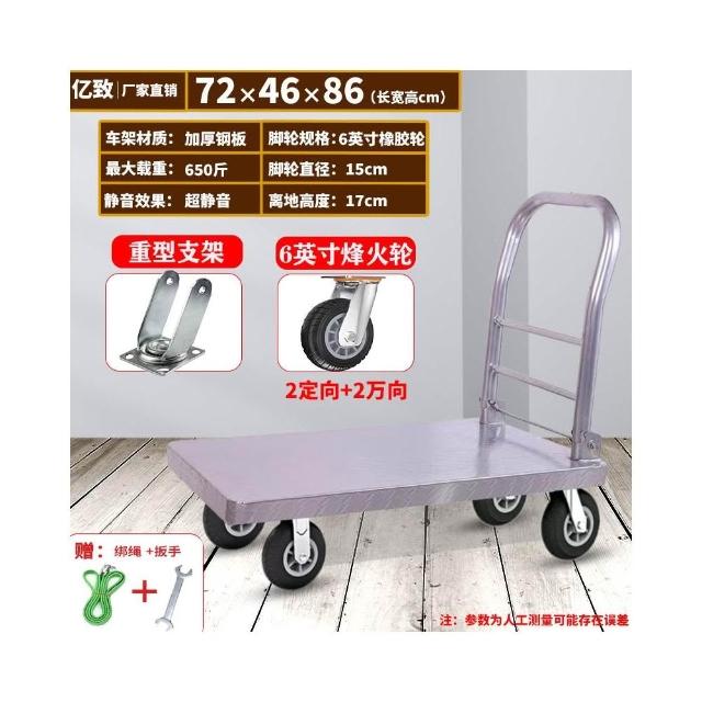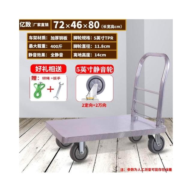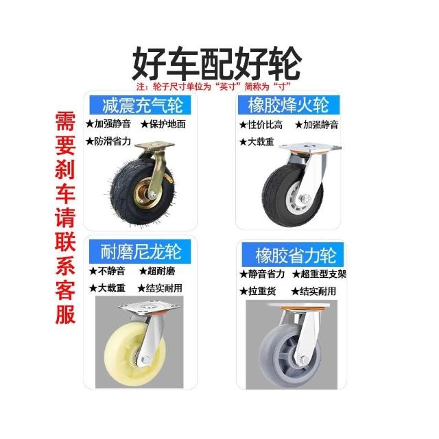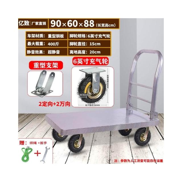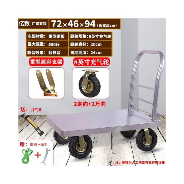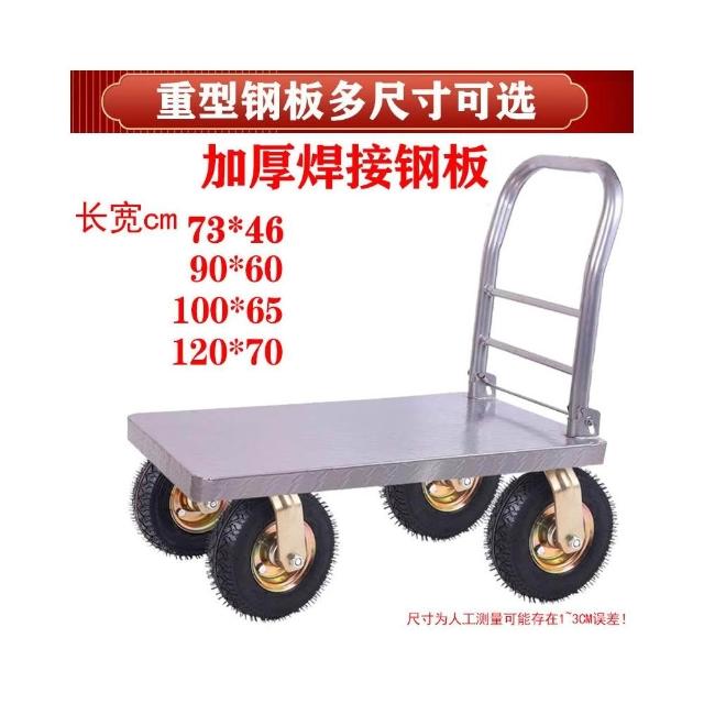 重型鋼板手推車搬運車大輪充氣輪平板拖車折疊靜音小推車拉貨鐵板