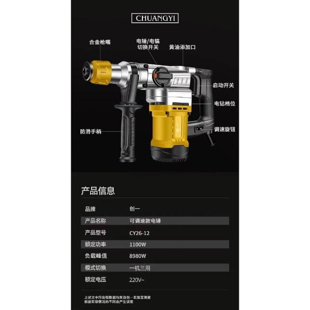 創一多功能電錘電鎬衝擊鑽大功率混凝土電動工具家用電鑽輕型方柄