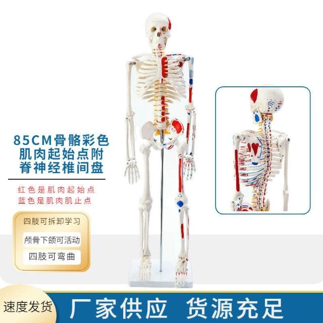 85CM人體骨骼帶神經帶椎間盤模型骨架附肌肉起止點著色及韌帶模型