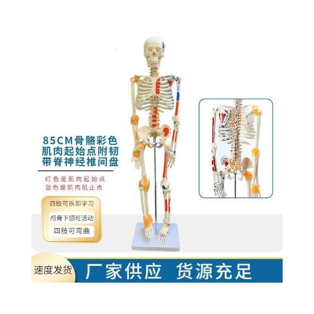 85CM人體骨骼帶神經帶椎間盤模型骨架附肌肉起止點著色及韌帶模型