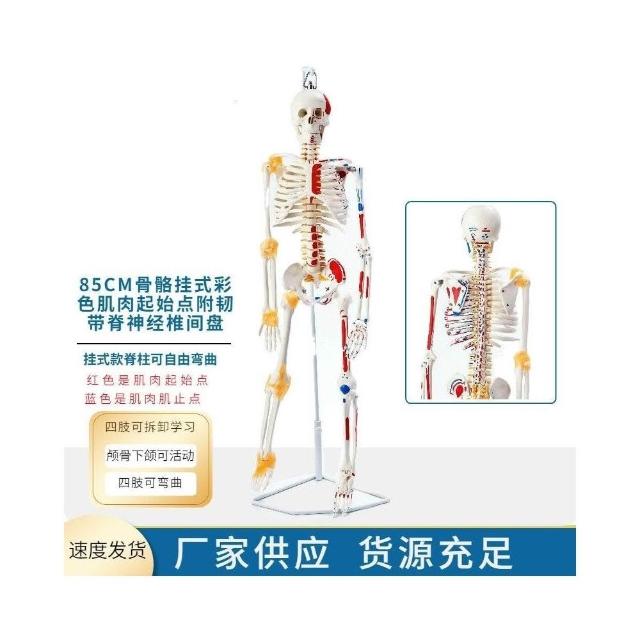 85CM人體骨骼帶神經帶椎間盤模型骨架附肌肉起止點著色及韌帶模型