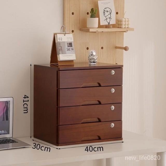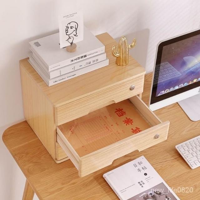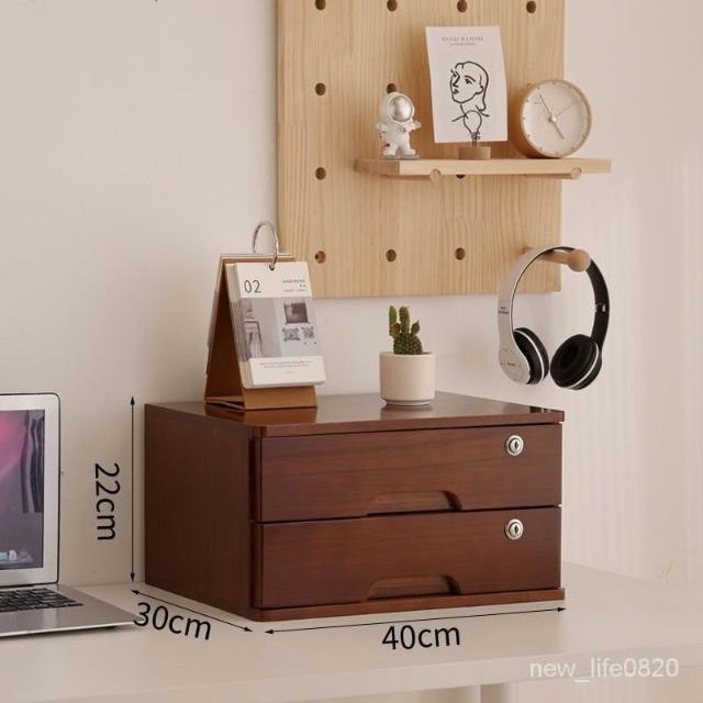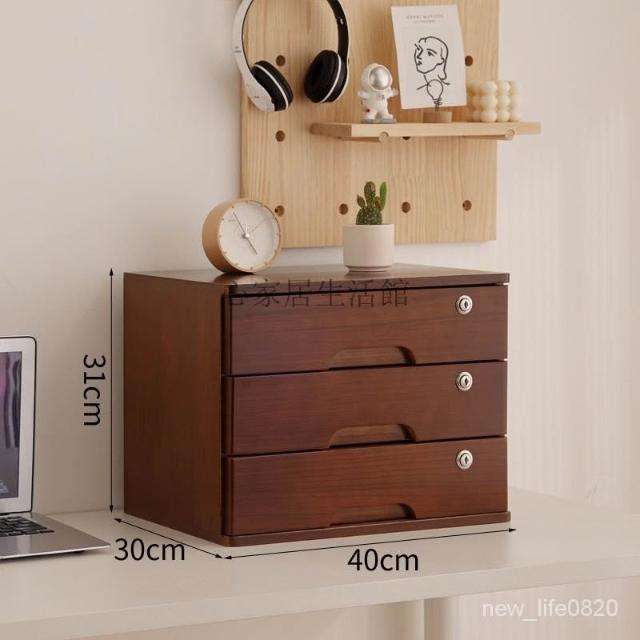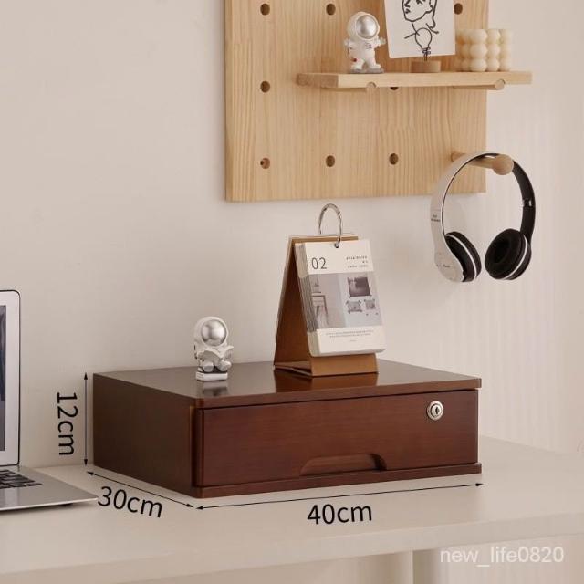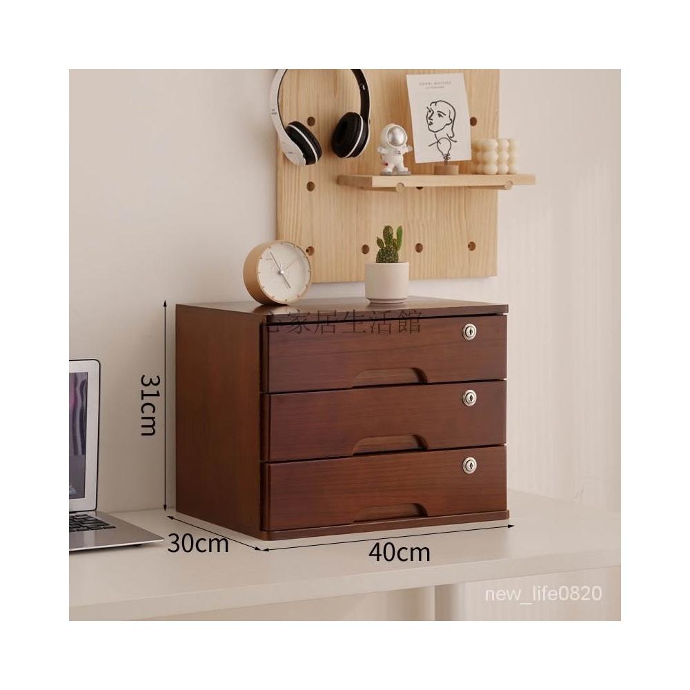 可開統編 實木全帶鎖收納盒桌麵抽屜木盒臥室客廳整理盒宿捨雜物復古儲物櫃 置物架收納櫃 雜誌架實木抽屜小櫃子化妝品收納