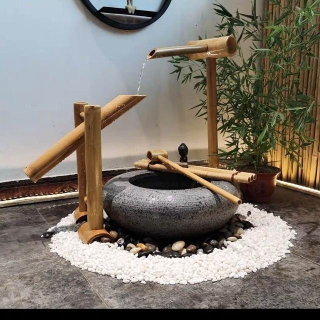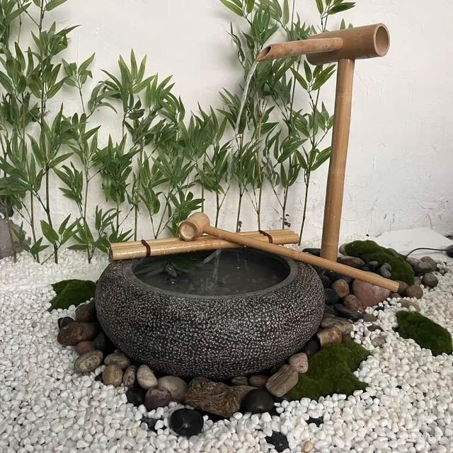 #免運#三聯發票#熱賣#貨到付款 日式石鉢水鉢石盆石燈籠禪意庭院景觀枯山水水景驚鹿竹子流水擺件