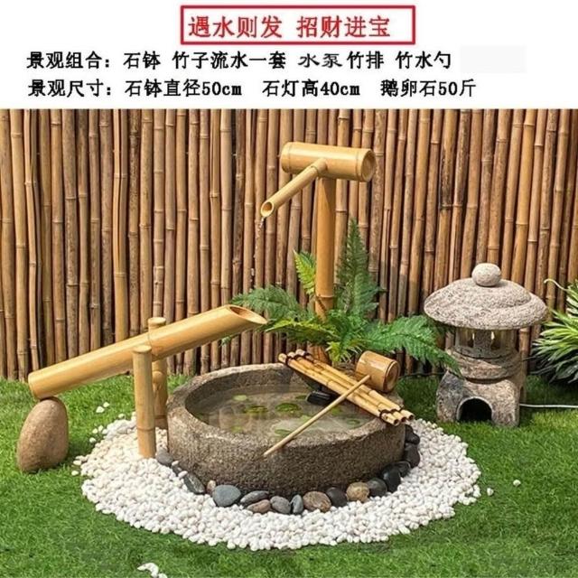 #免運#三聯發票#熱賣#貨到付款 日式石鉢水鉢石盆石燈籠禪意庭院景觀枯山水水景驚鹿竹子流水擺件