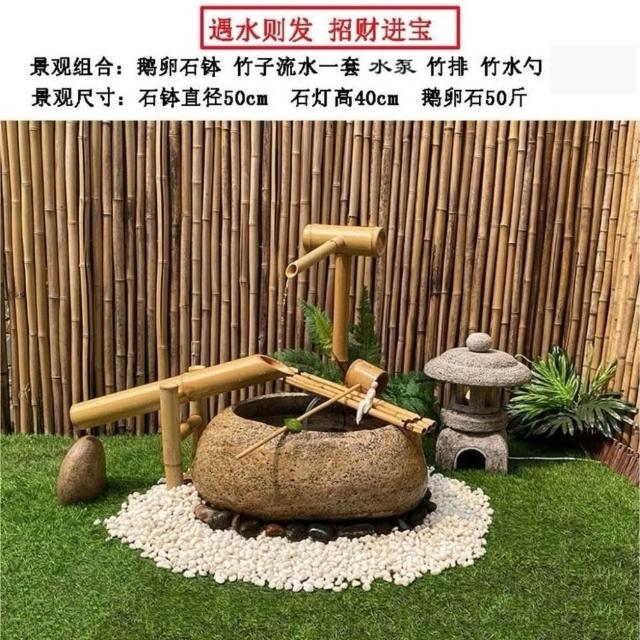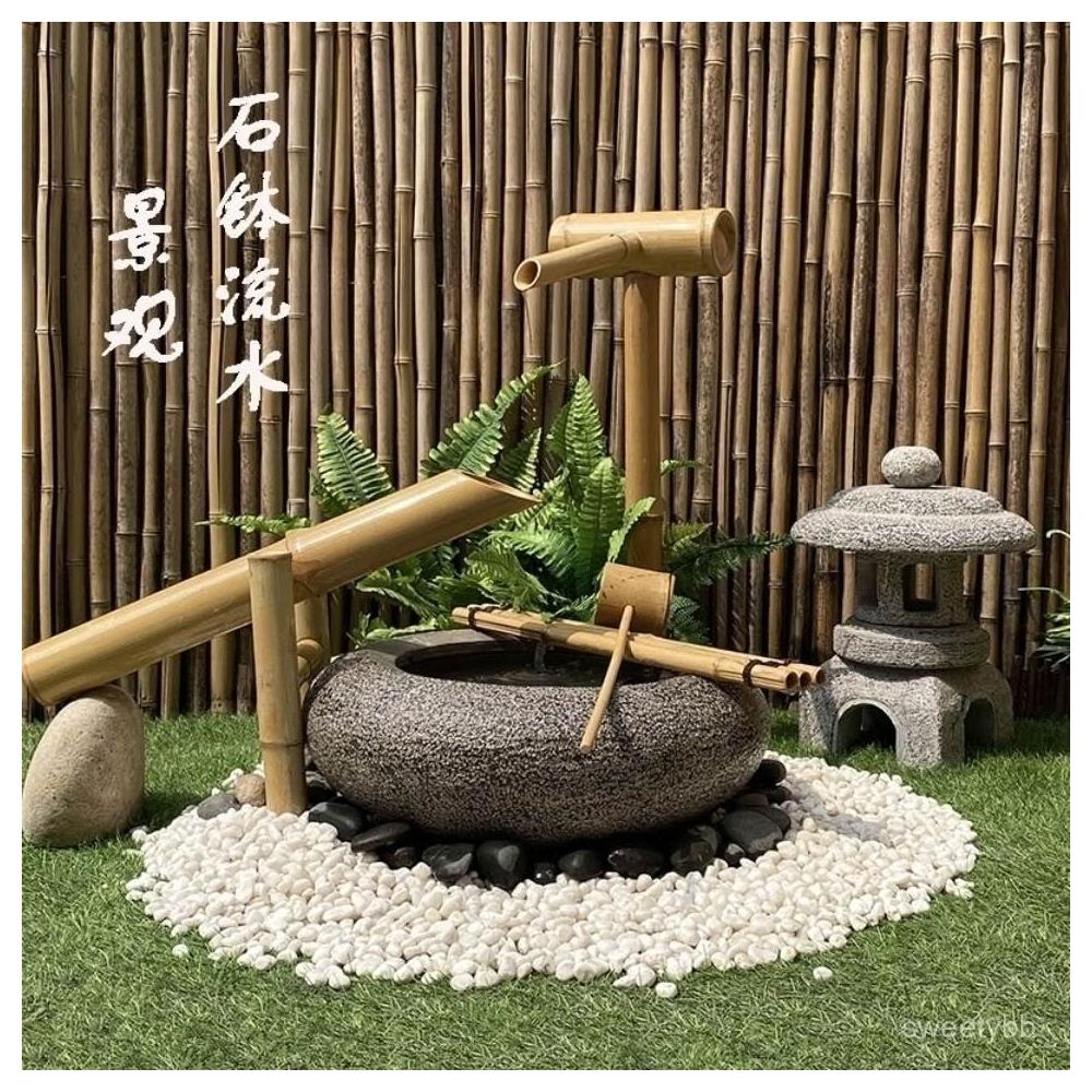 #免運#三聯發票#熱賣#貨到付款 日式石鉢水鉢石盆石燈籠禪意庭院景觀枯山水水景驚鹿竹子流水擺件