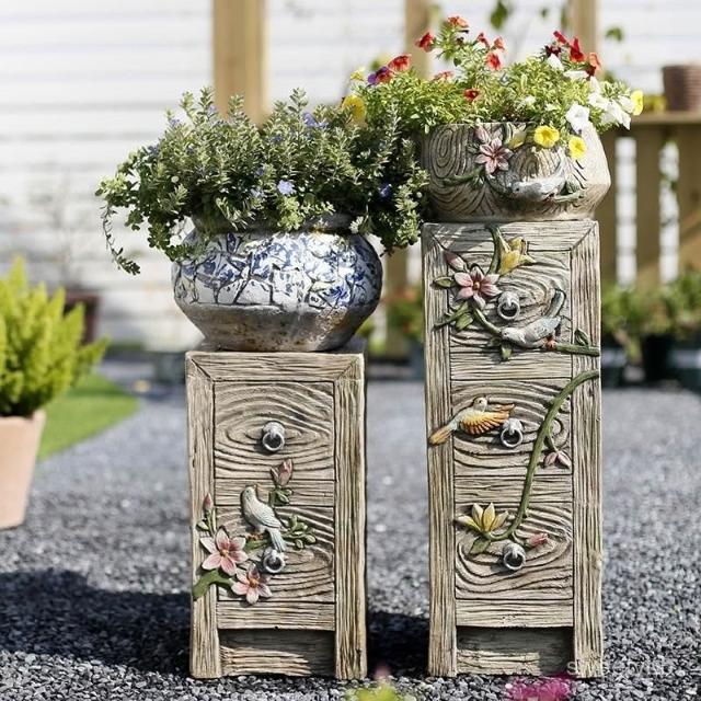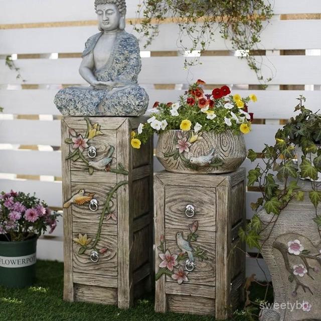 庭院花盆創意民宿擺件底座花園柱子中式石墩陽臺戶外裝飾布置造景