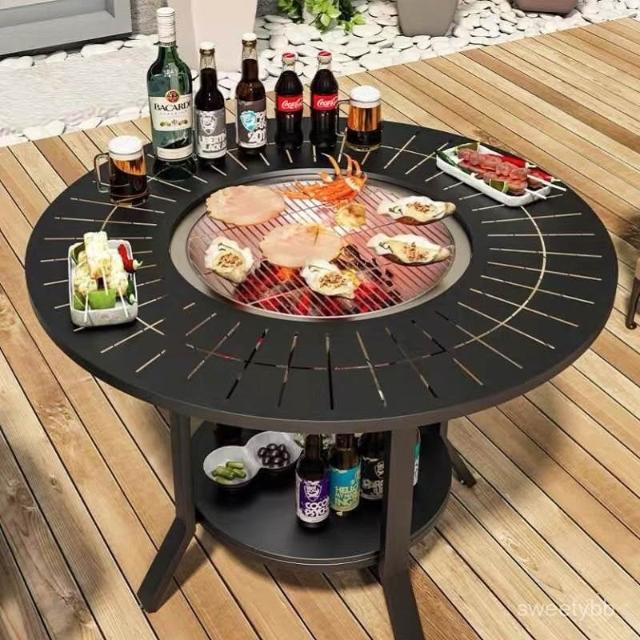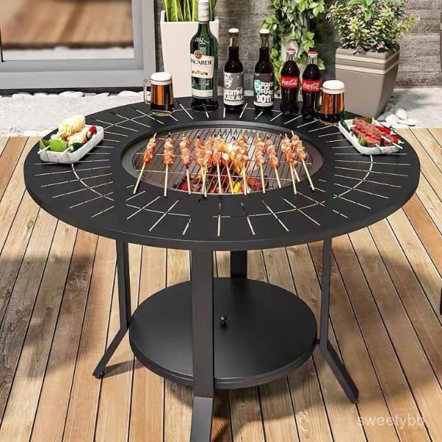 #免運#熱賣#三聯發票 戶外燒烤桌椅傢用木炭架燒烤爐庭院花園露天火盆休閒室外新款桌椅