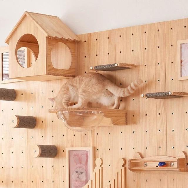 貓抓柱 貓抓板 貓墻 貓跳臺 貓窩 貓架子洞洞板 原木貓跳臺 牆壁式壁掛猫窩 實木猫窩