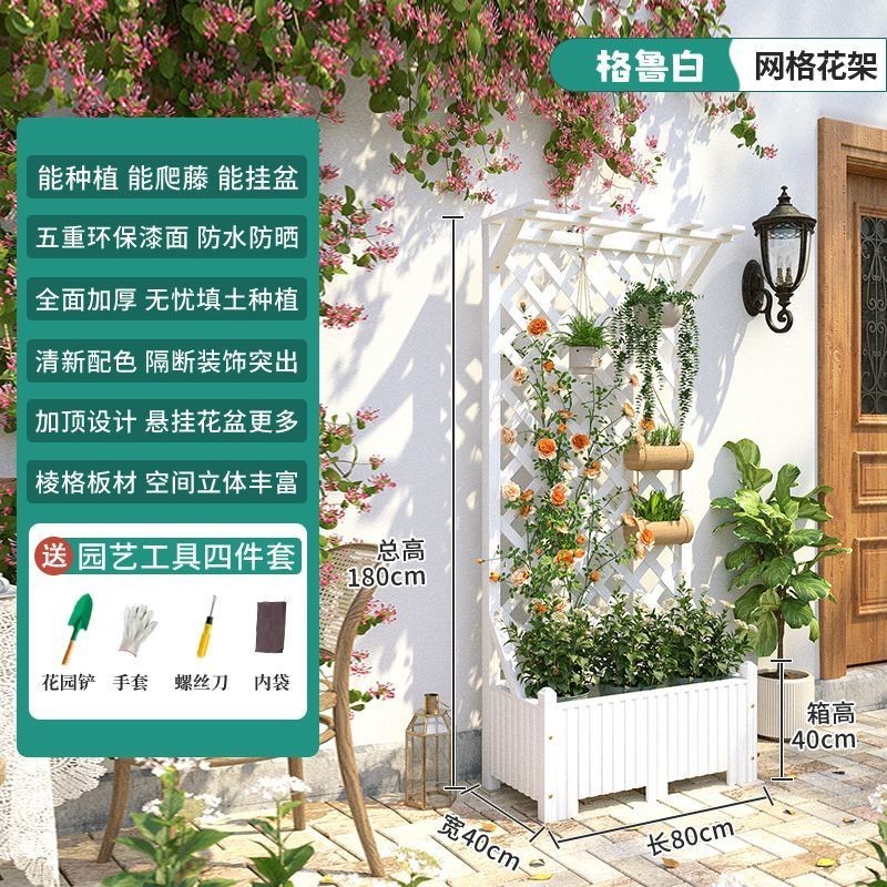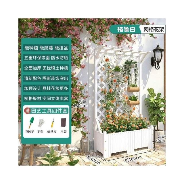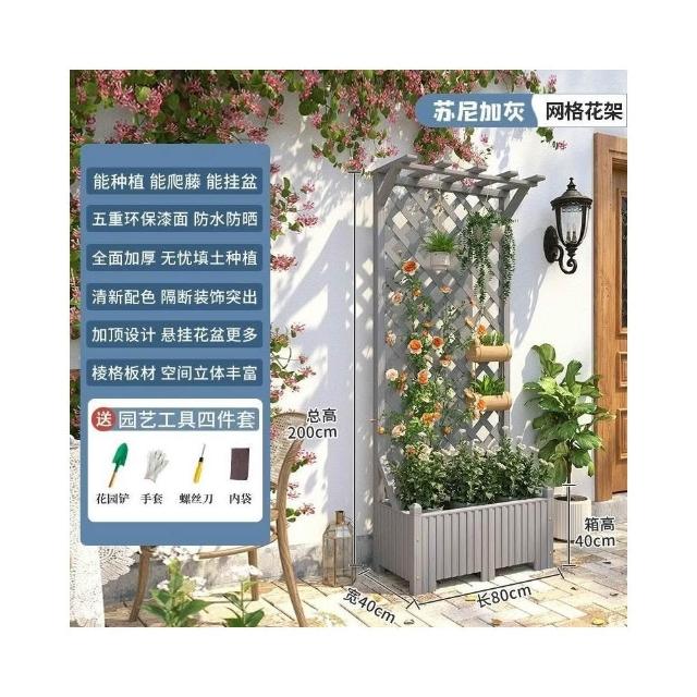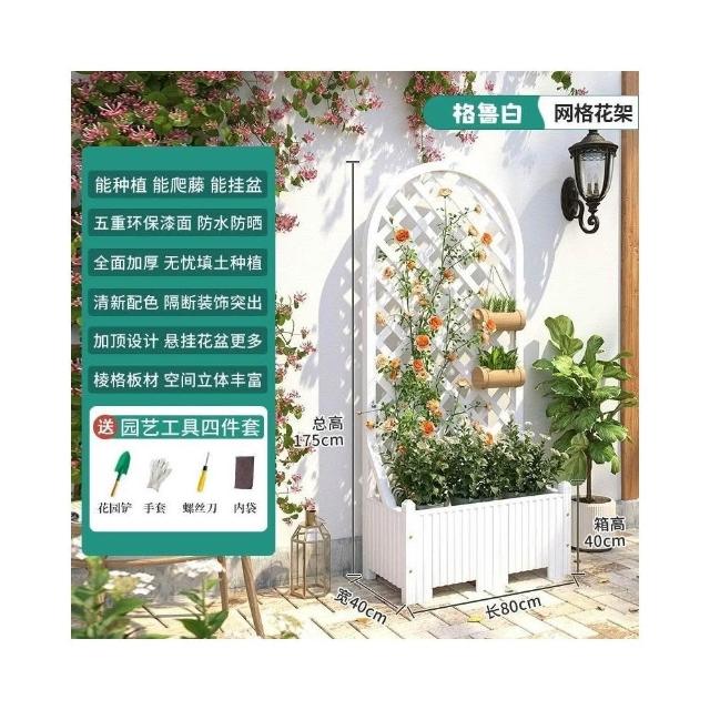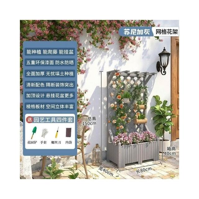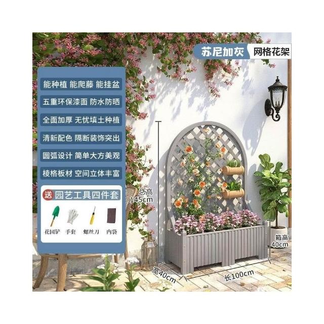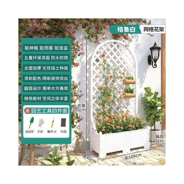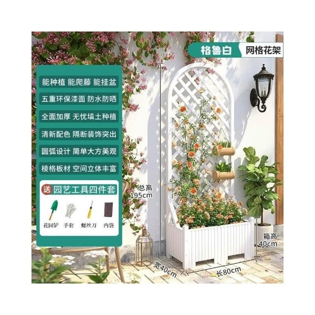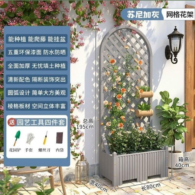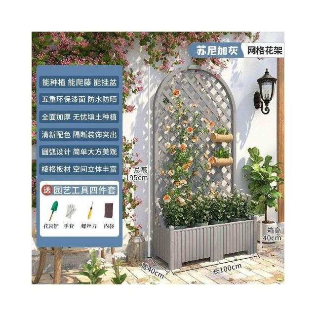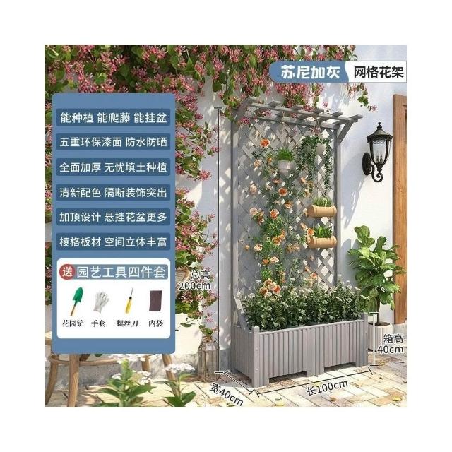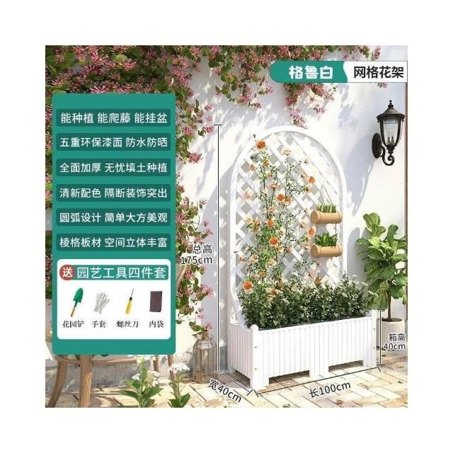 防腐木花架戶外庭院陽臺高端爬藤支架網紅網格室外落地隔斷花箱