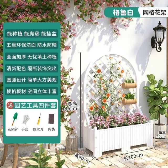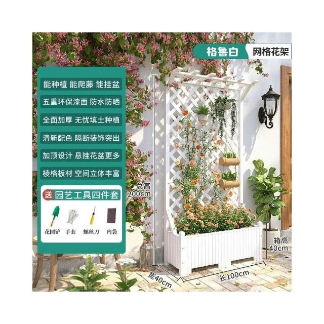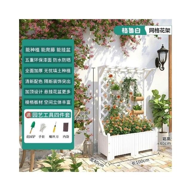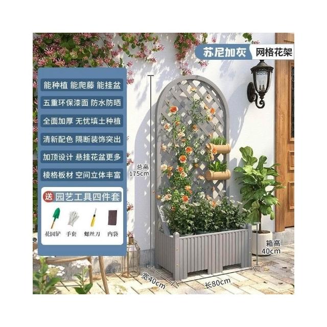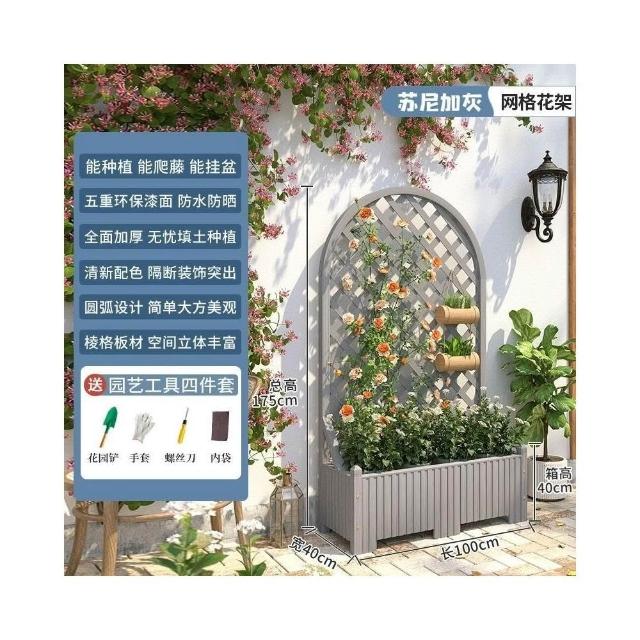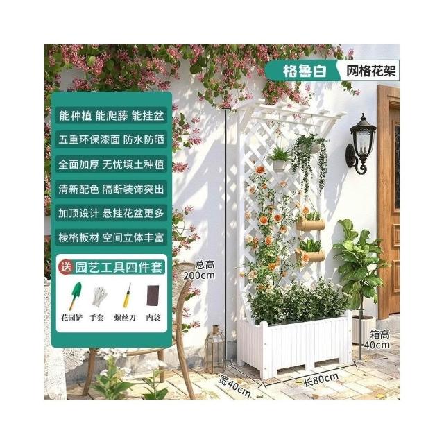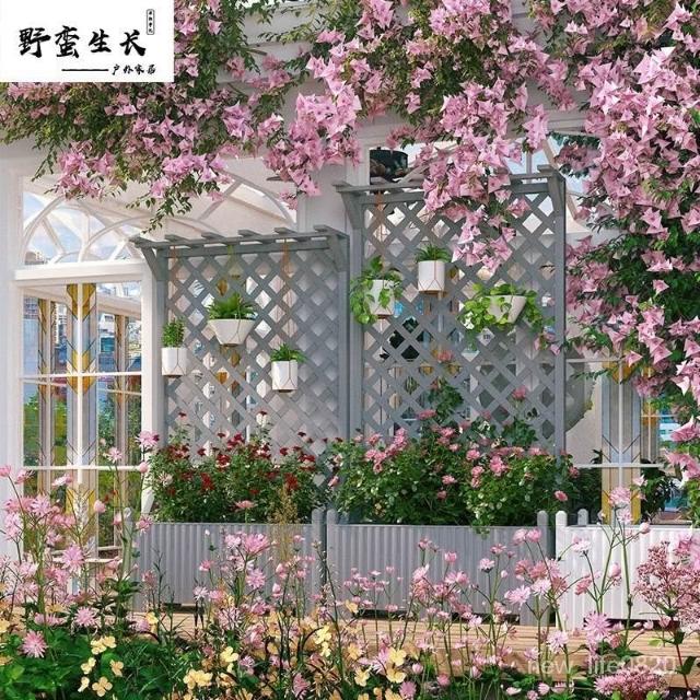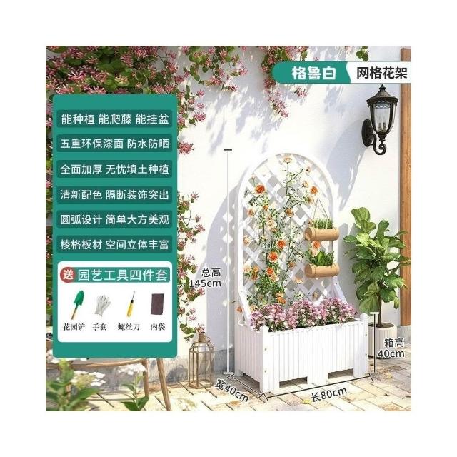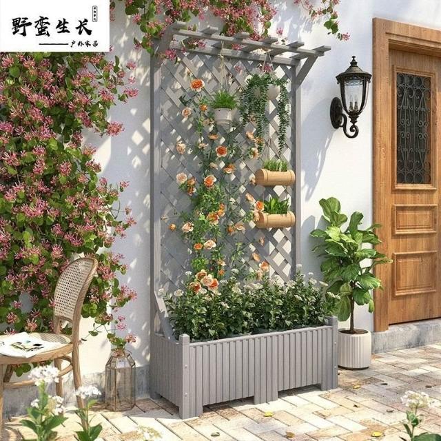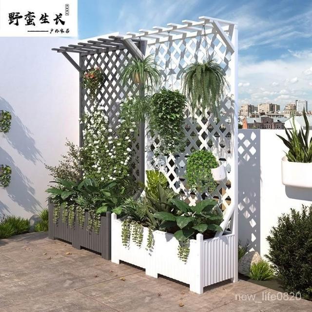 防腐木花架戶外庭院陽臺高端爬藤支架網紅網格室外落地隔斷花箱