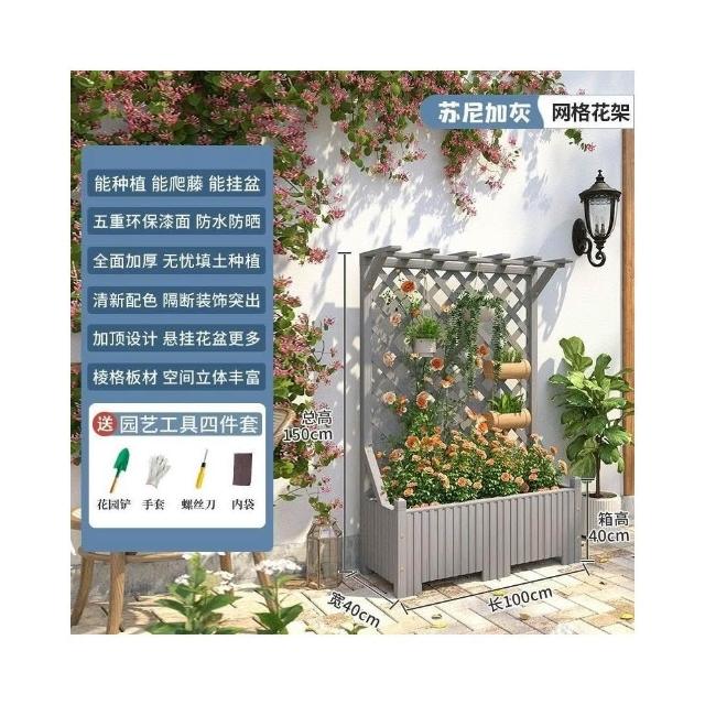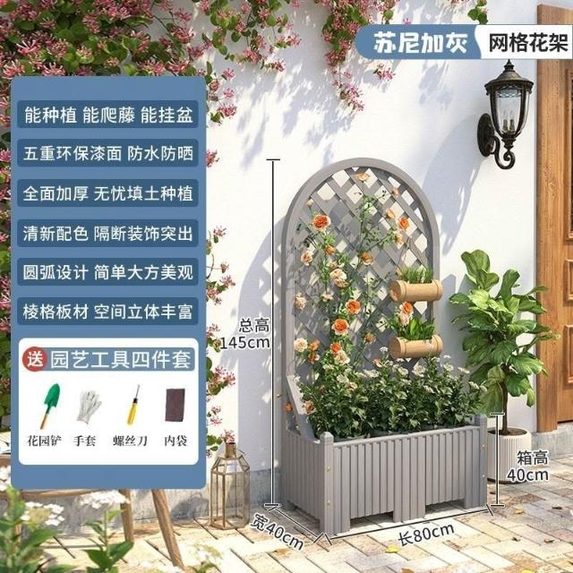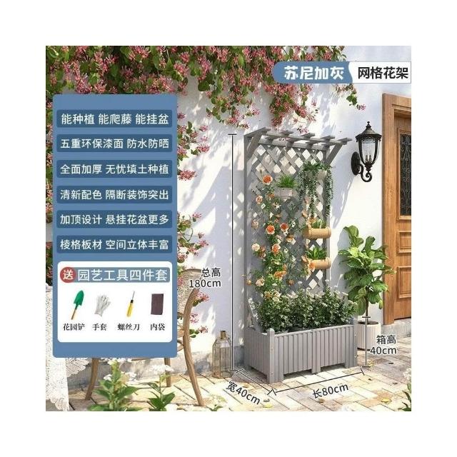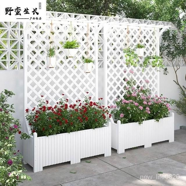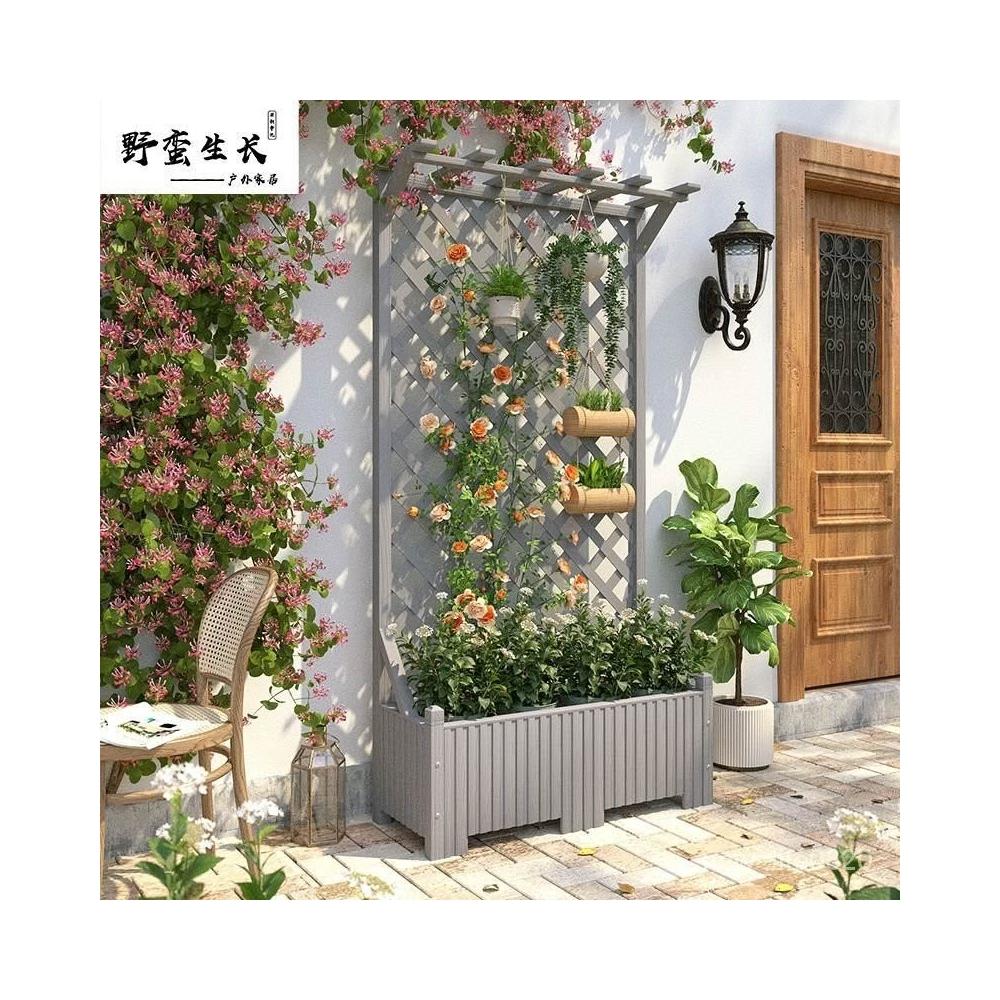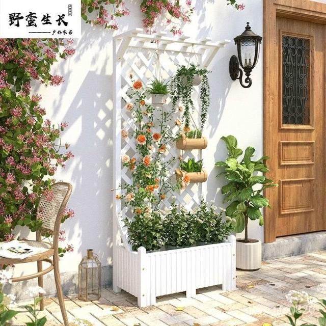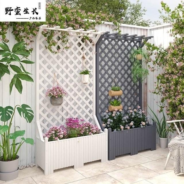 防腐木花架戶外庭院陽臺高端爬藤支架網紅網格室外落地隔斷花箱