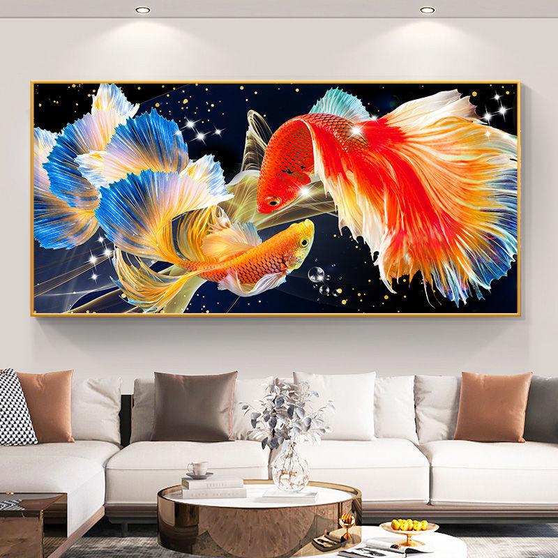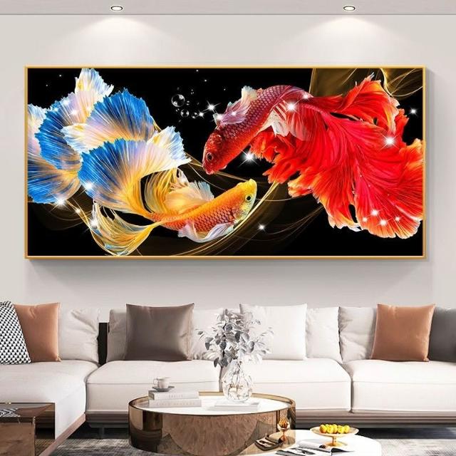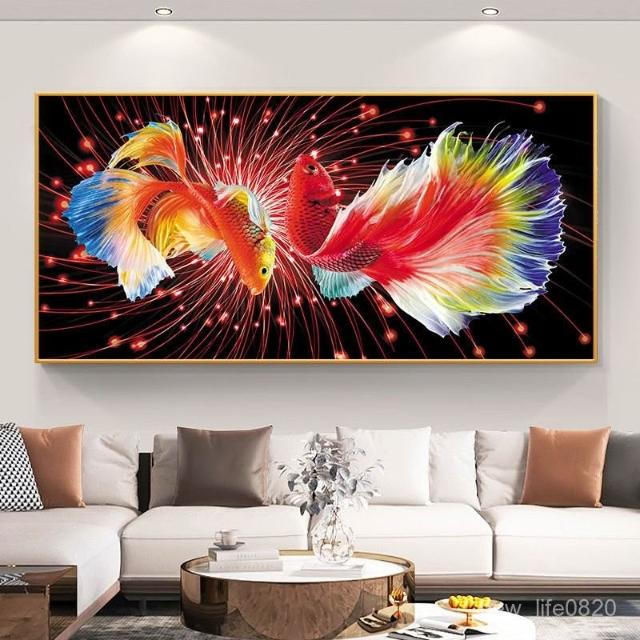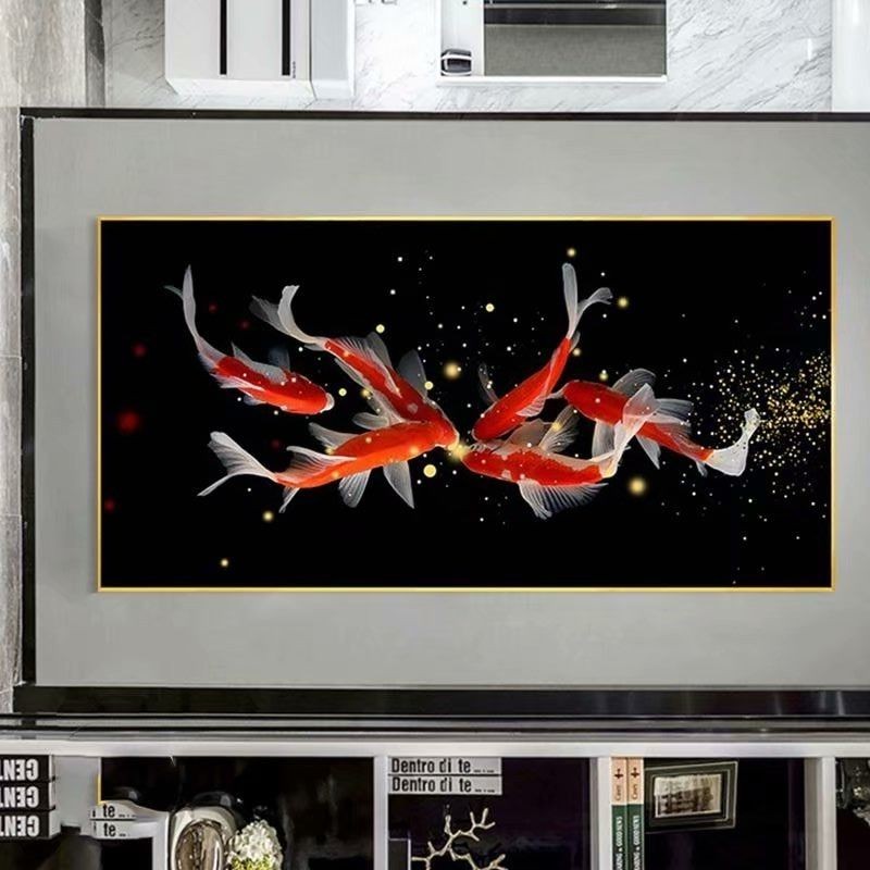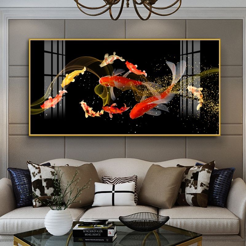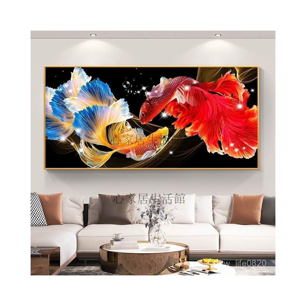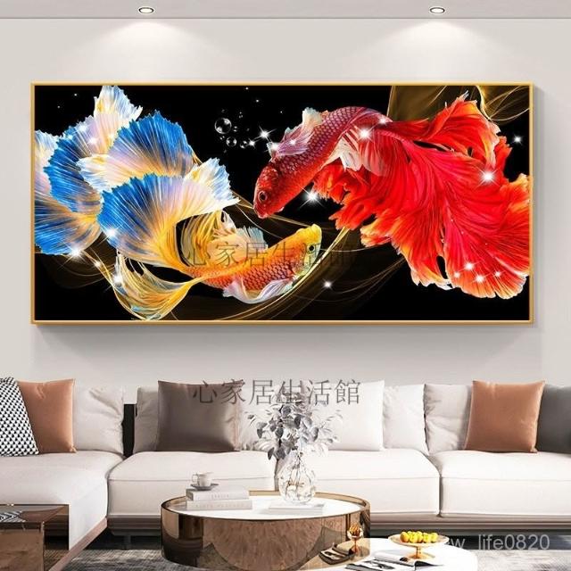 👉心家居生活館👉可開統編 招財錦鯉九魚圖客廳裝飾畵沙髮背景墻壁掛畵玄關餐廳輕奢現代簡約