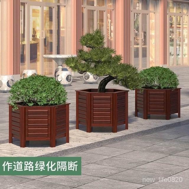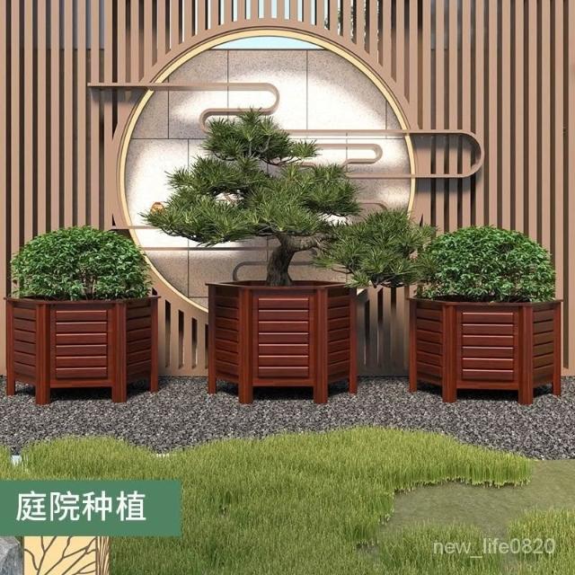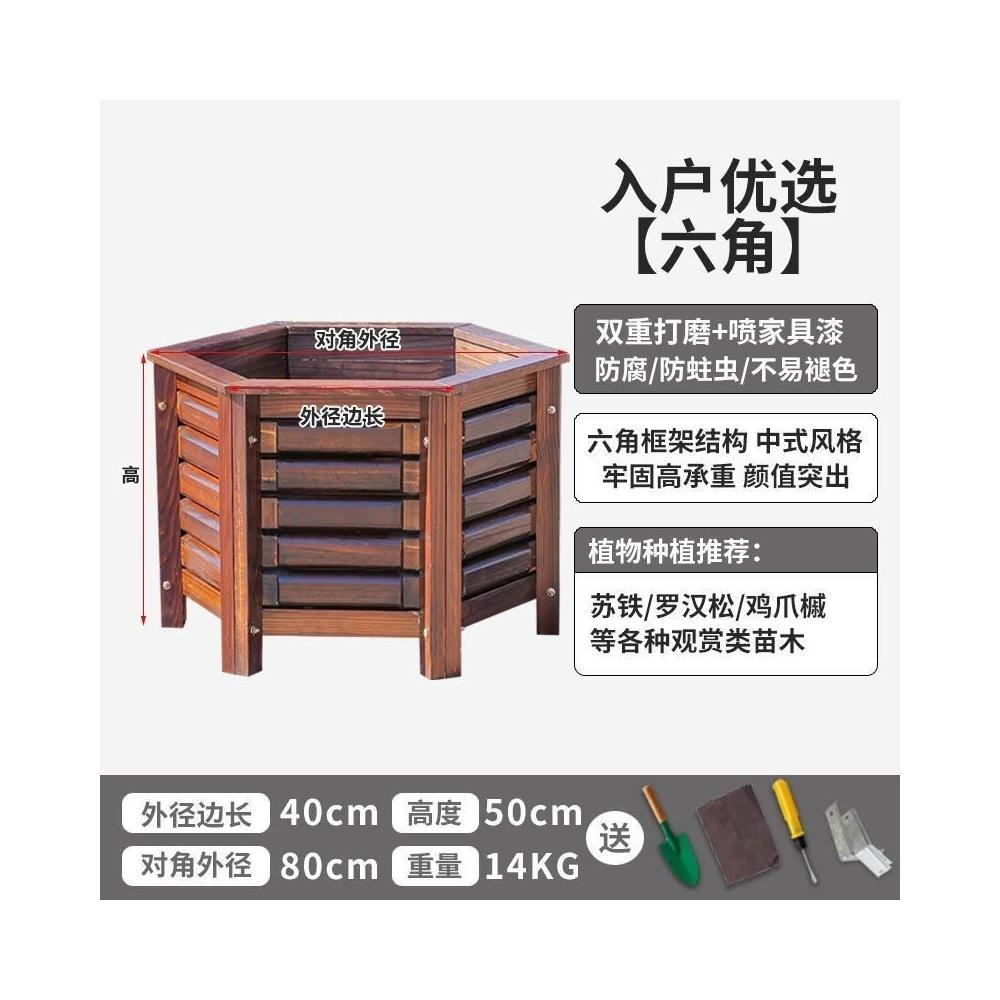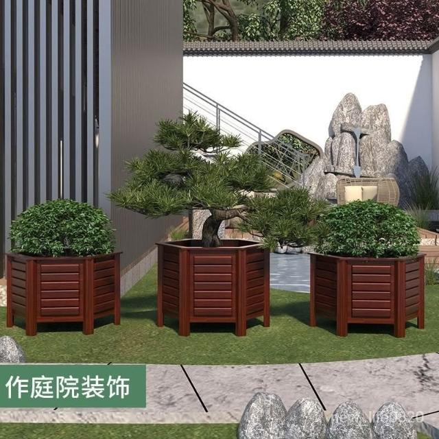 防腐木花箱戶外庭院果樹種植箱別墅門口鐵樹大花盆六角種樹專用箱