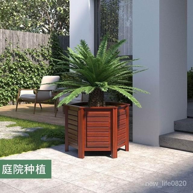 防腐木花箱戶外庭院果樹種植箱別墅門口鐵樹大花盆六角種樹專用箱
