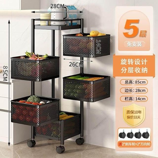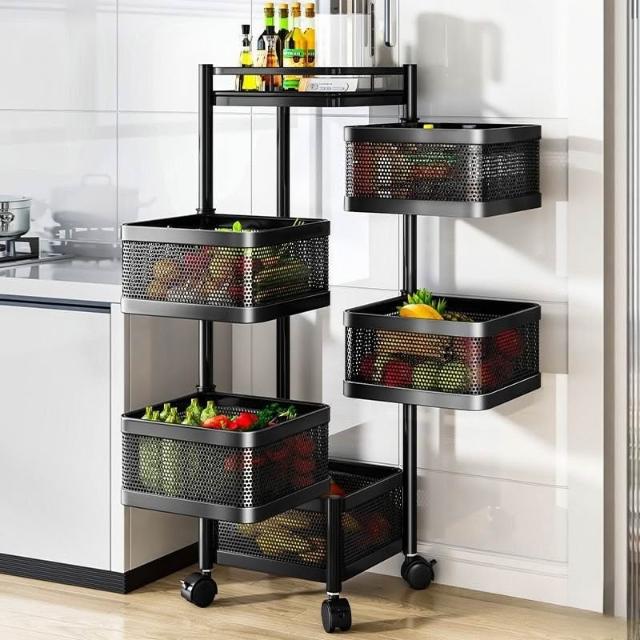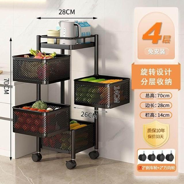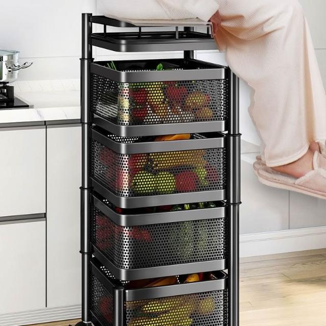 傢用落地收納架 客廳零食箱 玩具果蔬菜籃多層小推車收納架 可活動輪滑收納架 多層伸縮收納架