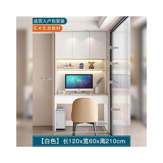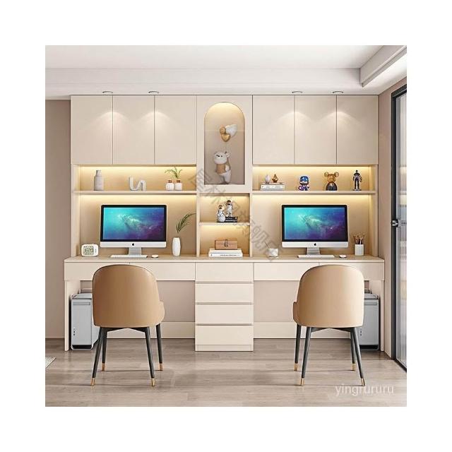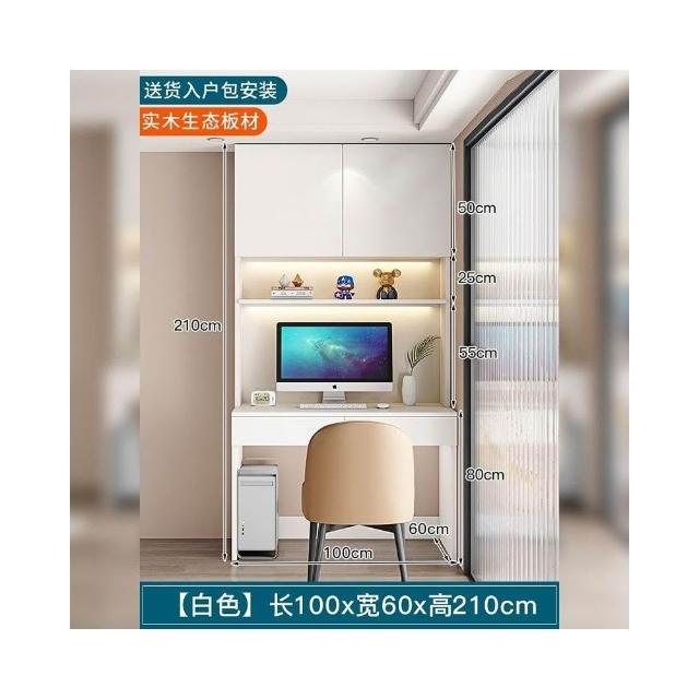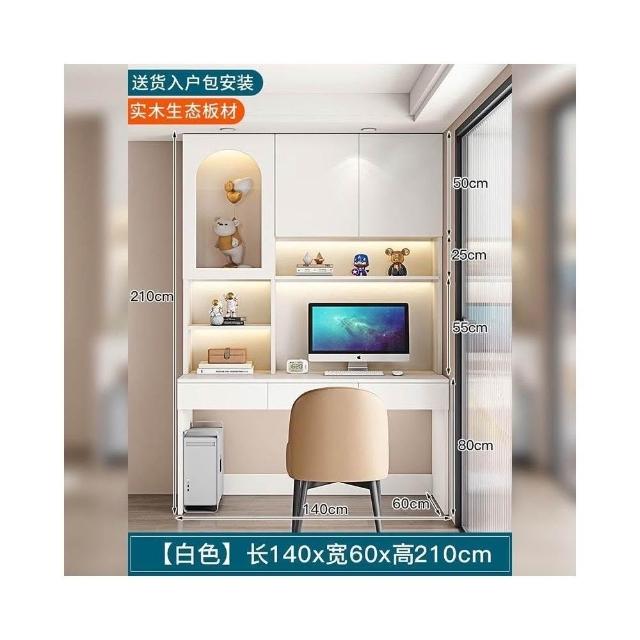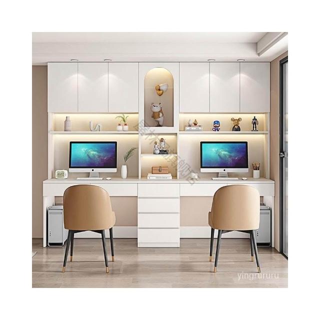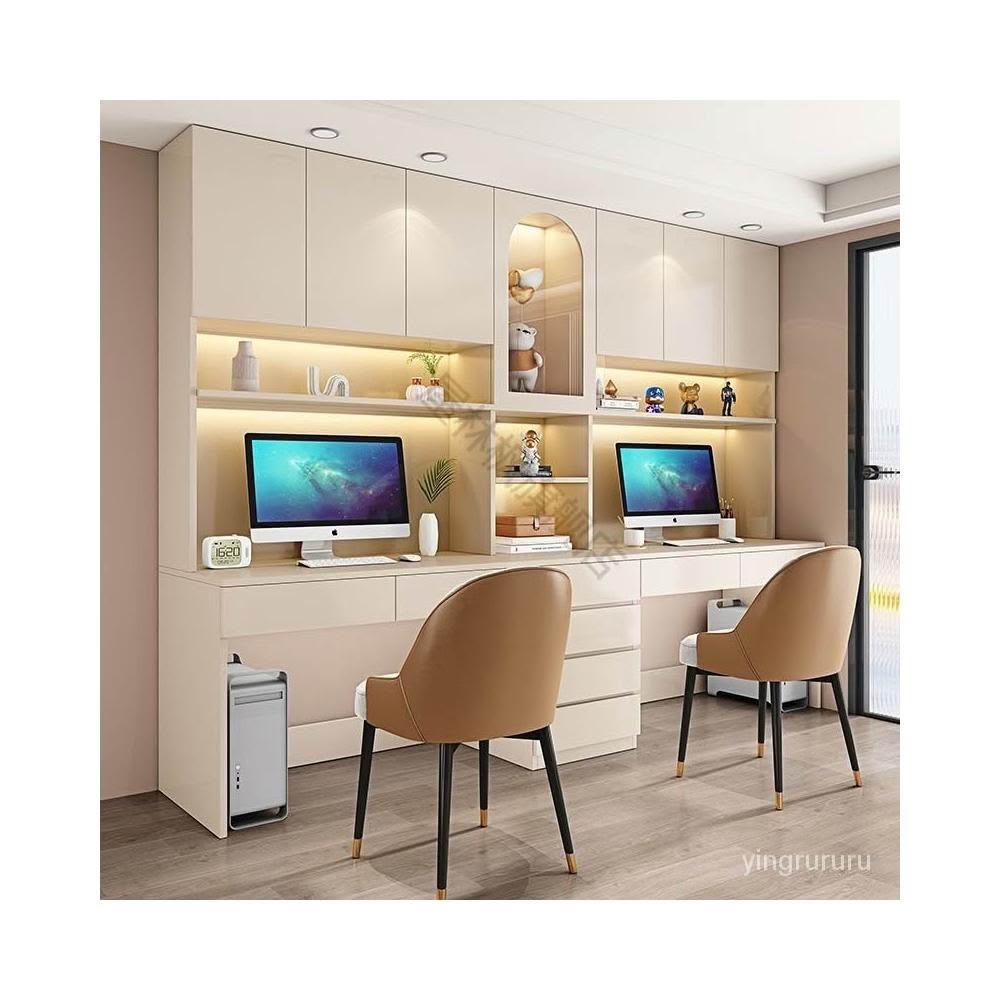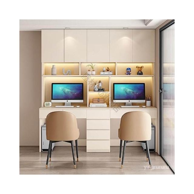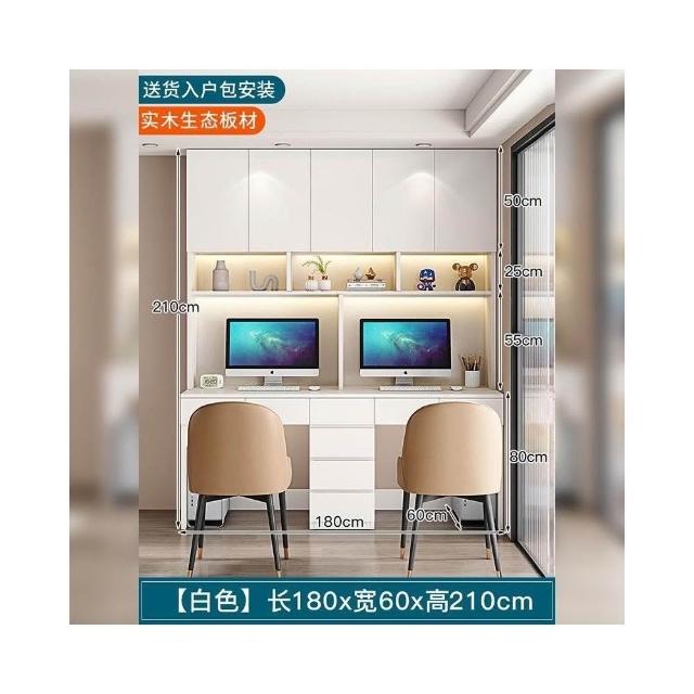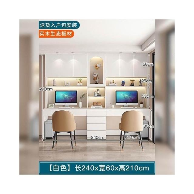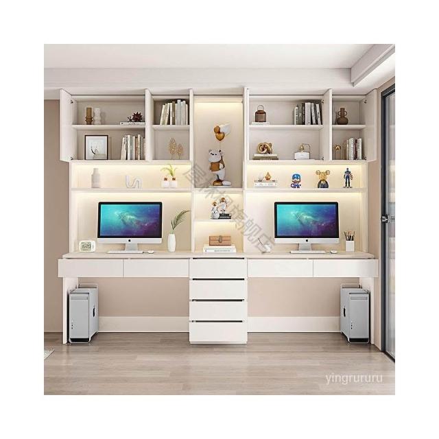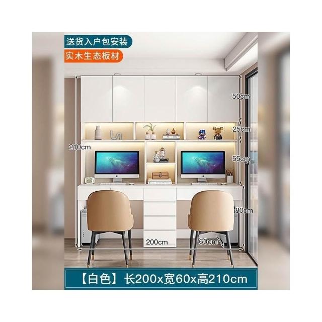 雙人書桌電腦桌學生傢用實木臺式寫字桌臥室輕奢書架一體學習桌子 衣櫃