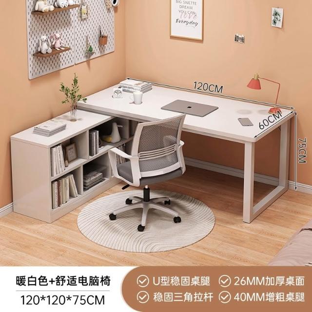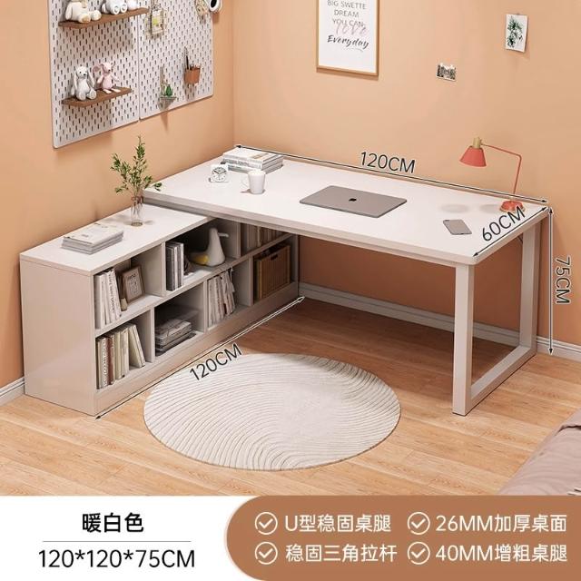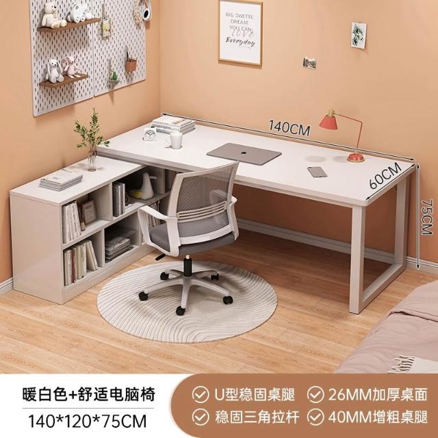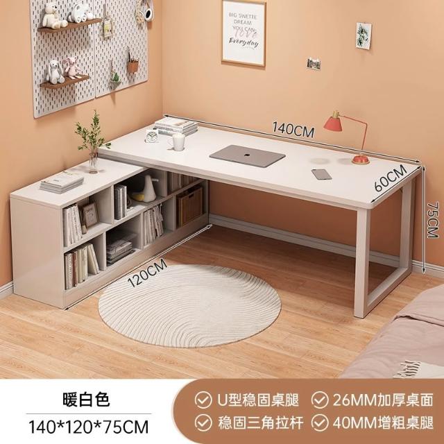福利款 免運 轉角書桌學生家用電腦桌l型寫字桌帶書架辦公桌簡約現代卧室桌子