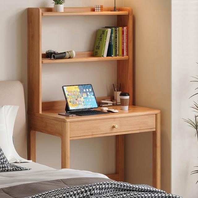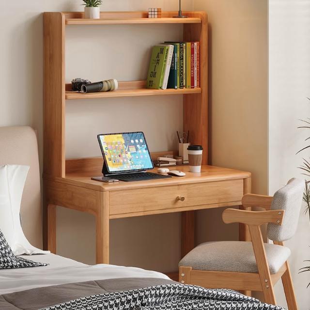 北歐實木書桌書架一體桌 長60/70/80公分家用臥室寫字學習桌 簡約電腦桌
