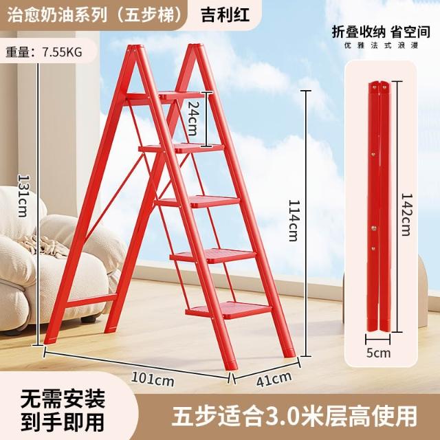 可开统编✨梯子 家用折叠伸缩梯子 小型轻便三步梯凳 多功能人字梯 踏步爬梯 收缩楼梯閣樓扶梯 人字合梯 工作梯 安全扶手