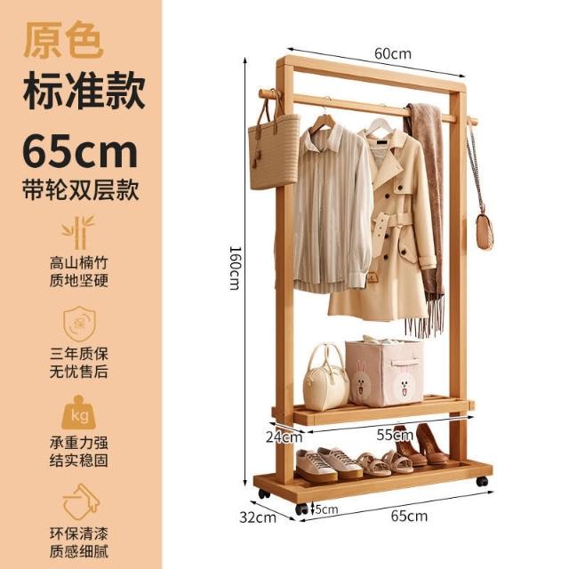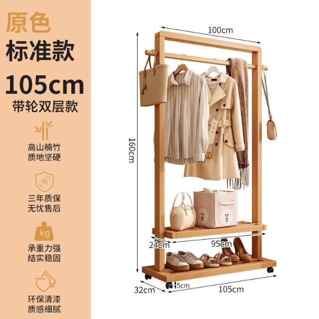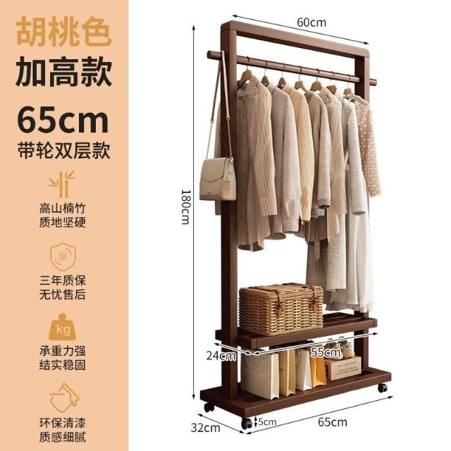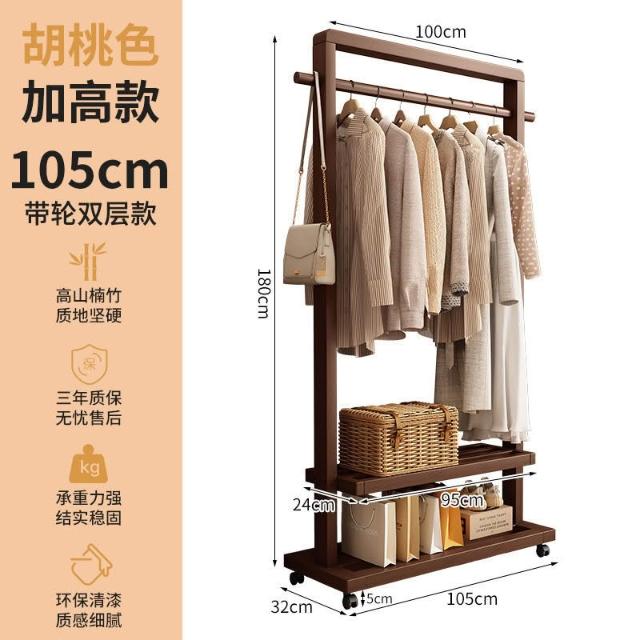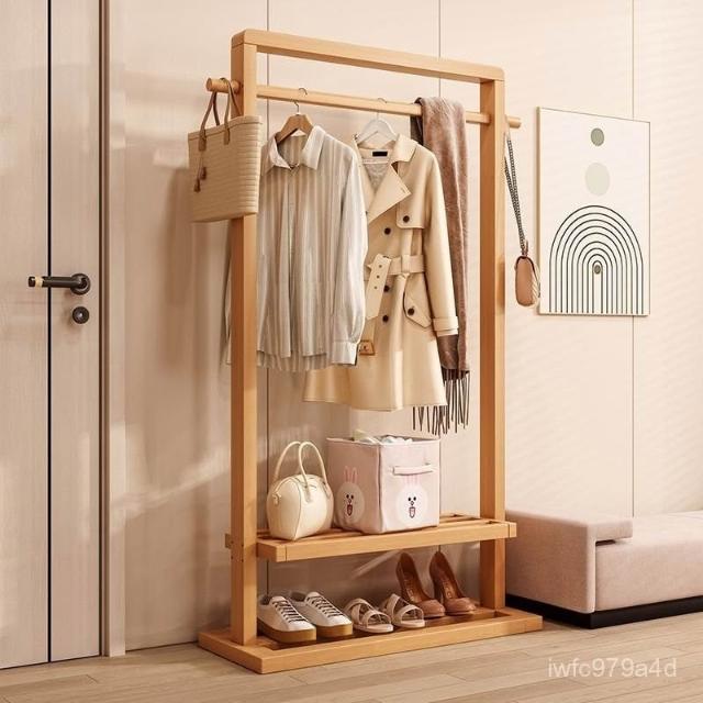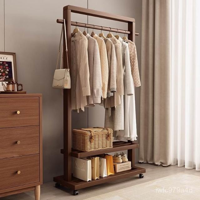 新品上市 掛衣架實木落地衣架帶輪臥室衣帽架客廳簡約現代新中式衣架可移動