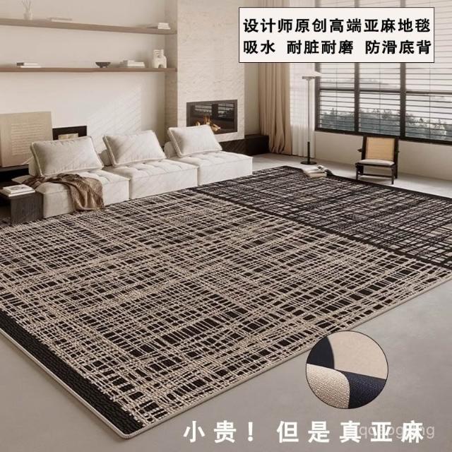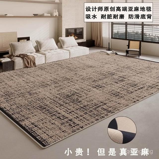 輕奢客廳地毯 免運 客廳地毯新款亞麻複古沙髮茶幾墊高級臥室床邊毯吸水防汙防臟地墊