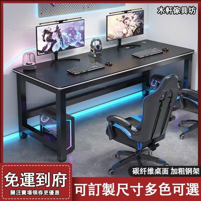 電腦桌 免運 可訂製尺寸 碳纖維台式家用電腦桌 遊戲桌 卧室書桌 辦公桌 工作台 網吧長桌子 雙人電競桌 萬用桌 桌子