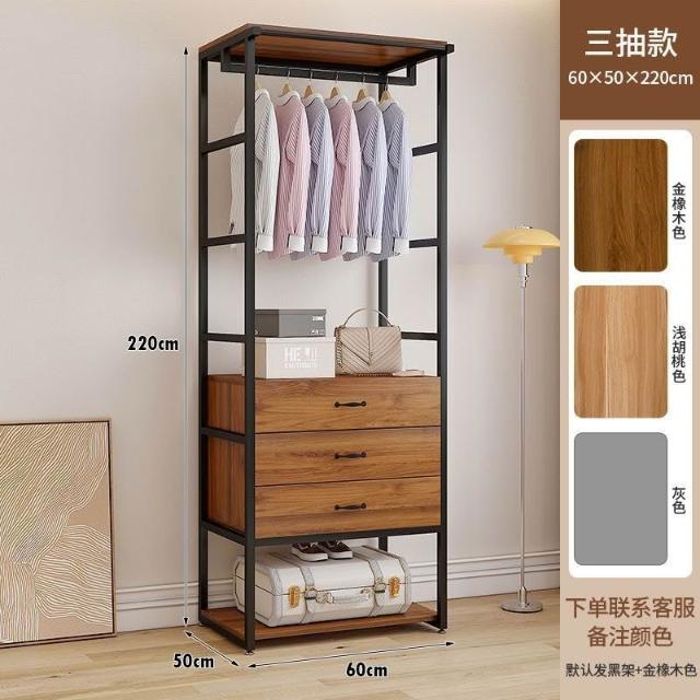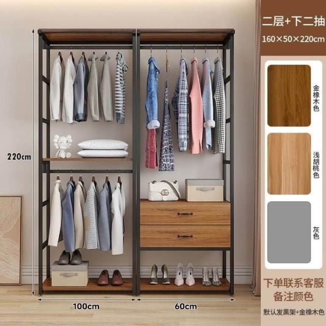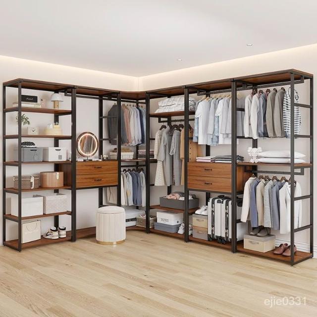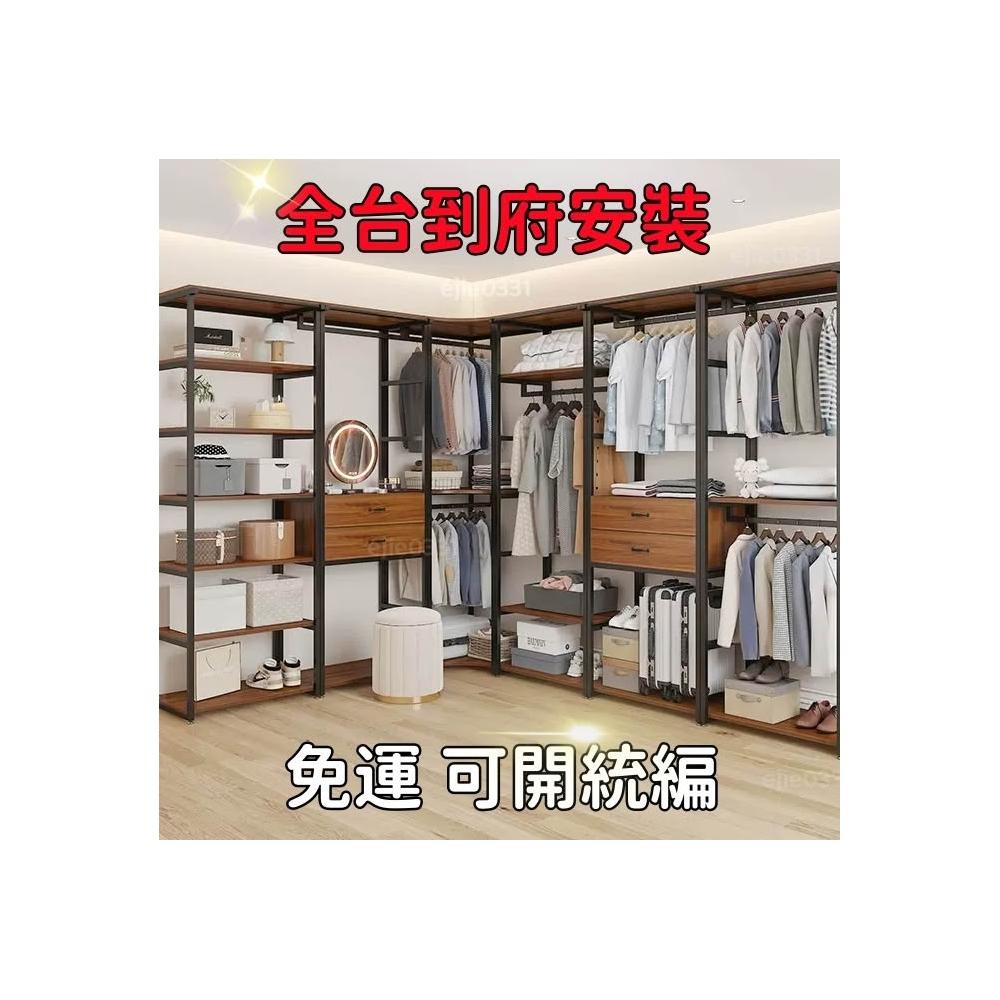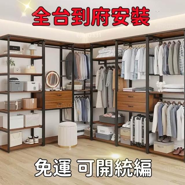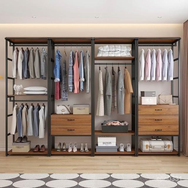 💕可到府安裝 免運 可開發票 開放式衣帽間架子落地衣架傢用臥室帶抽屜收納雙層組閤開放式衣櫃 置物架 收納架抽屜收納櫃