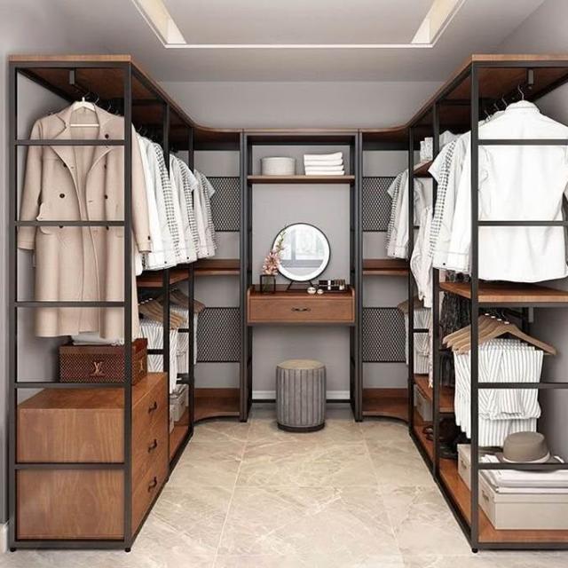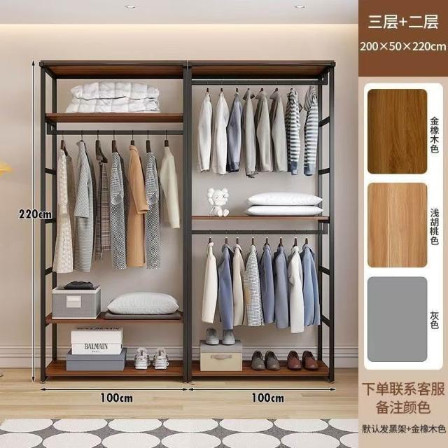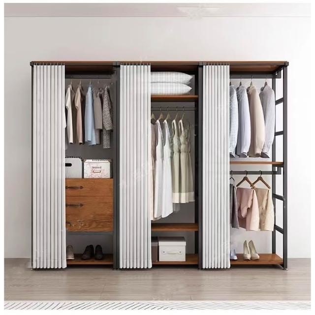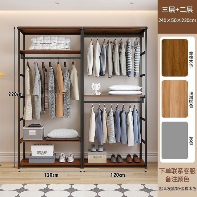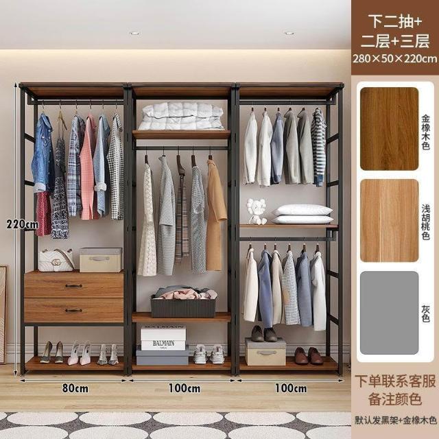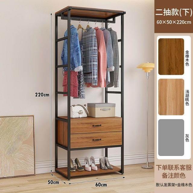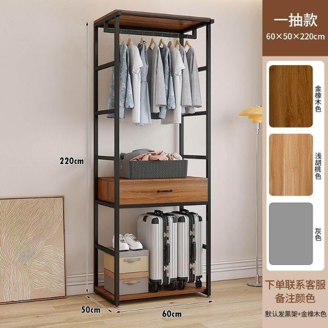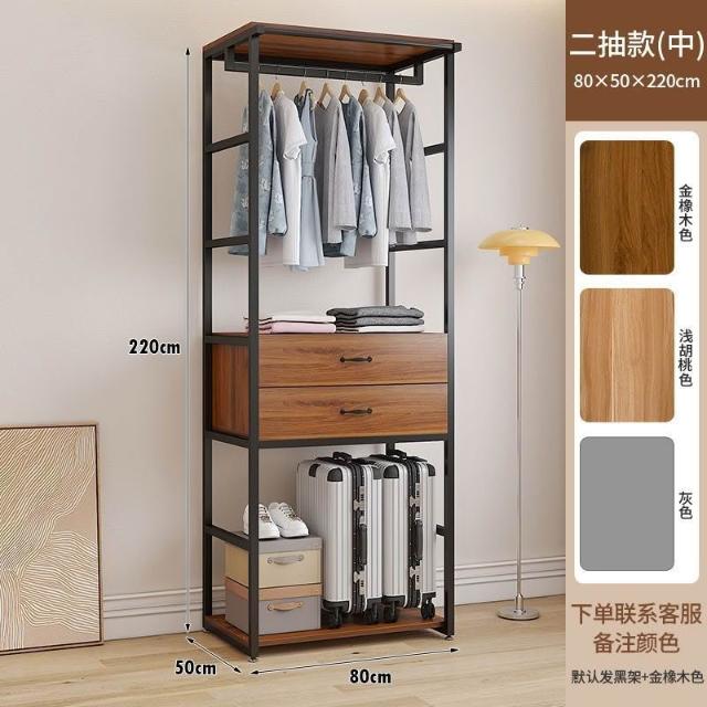 💕可到府安裝 免運 可開發票 開放式衣帽間架子落地衣架傢用臥室帶抽屜收納雙層組閤開放式衣櫃 置物架 收納架抽屜收納櫃