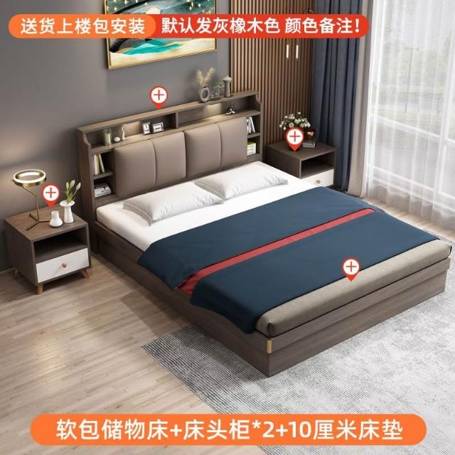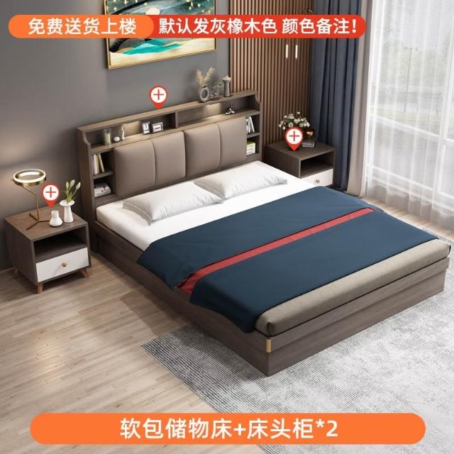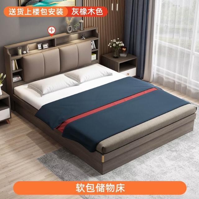 免稅闆式床雙人床1.5米傢用臥室1.2米現代簡約高箱儲物收納床榻榻米床 YSDQ