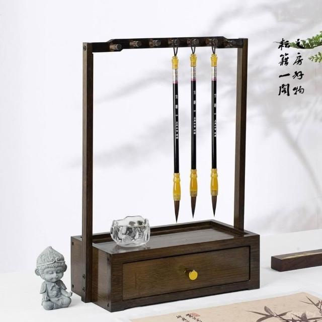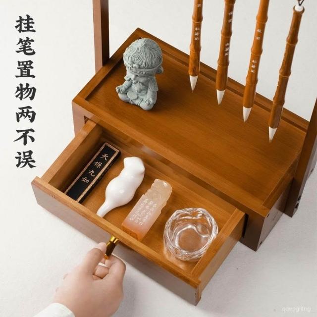 楠竹抽屜筆架毛筆掛架多功能書法專用掛毛筆的收納架子擺件新中式