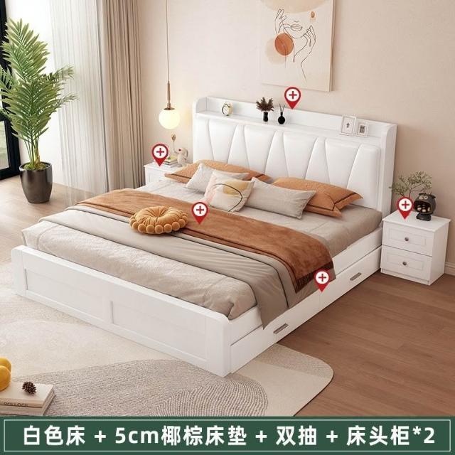 軟包全實木床雙人1.8m現代簡約經濟型婚床主臥1.2m單人床出租房床