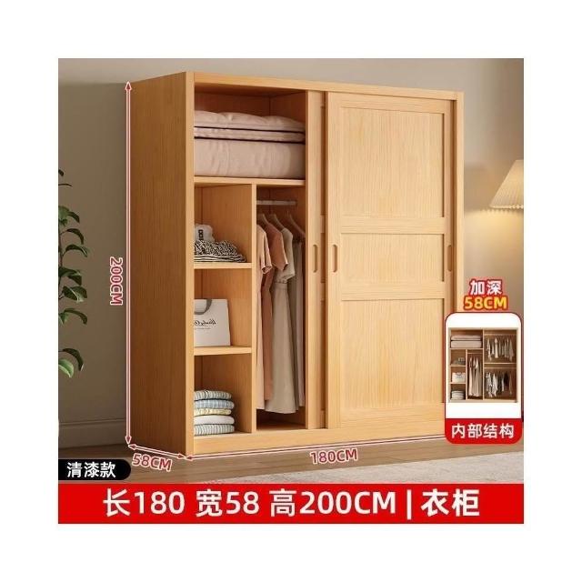 全實木衣櫃家用臥室推拉門衣櫃小戶型現代原木風滑門衣櫥