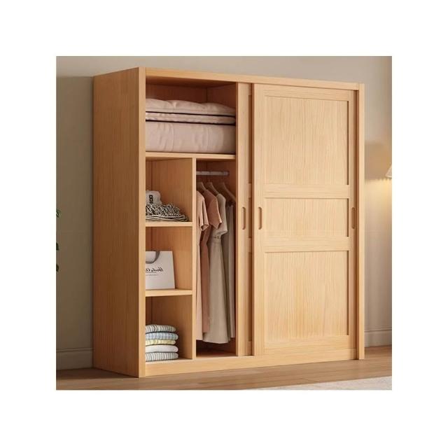 全實木衣櫃家用臥室推拉門衣櫃小戶型現代原木風滑門衣櫥
