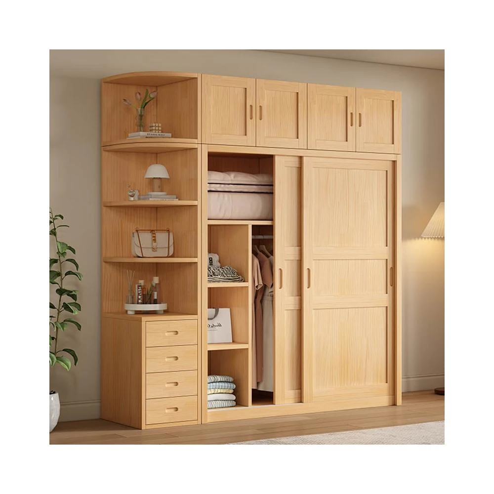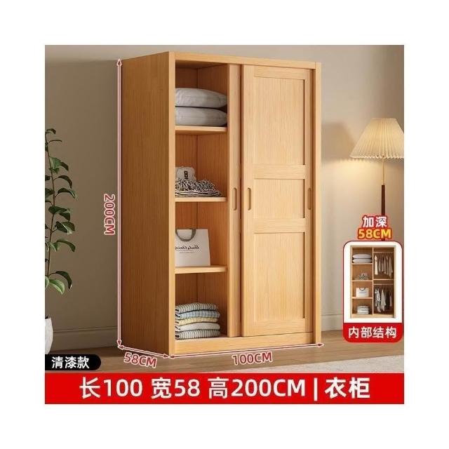 全實木衣櫃家用臥室推拉門衣櫃小戶型現代原木風滑門衣櫥