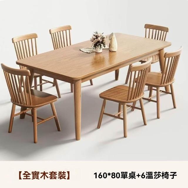 北歐全實木餐桌家用小戶型餐桌椅組合4人6人原木色長方形吃飯桌子