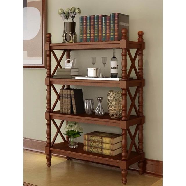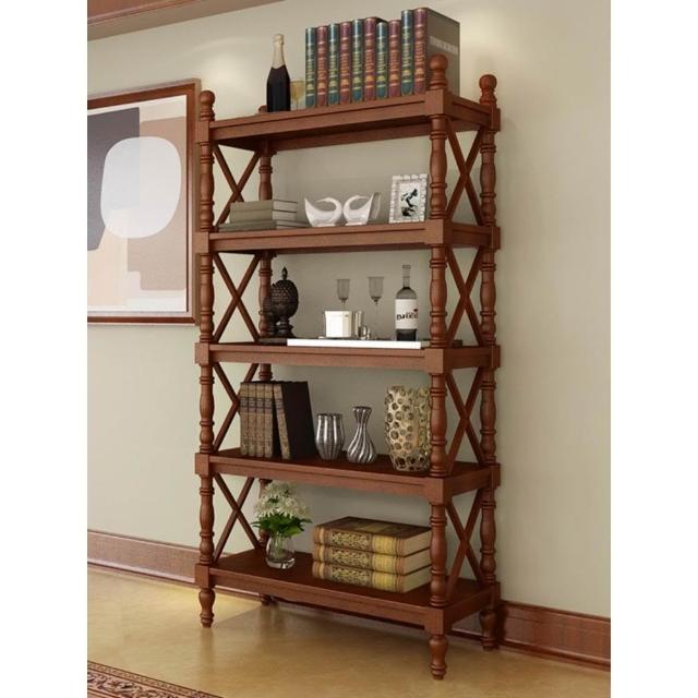 歐式實木置物架書櫃落地美式組合書架廚房客廳書房多用層架收納架
