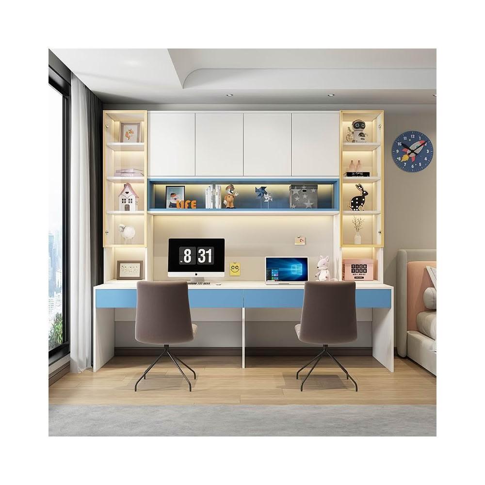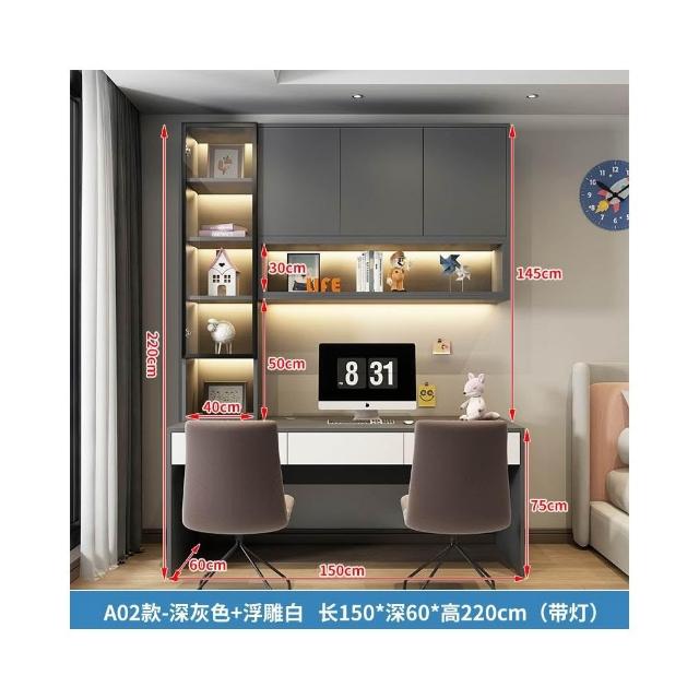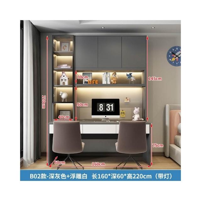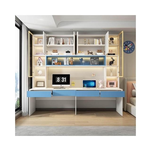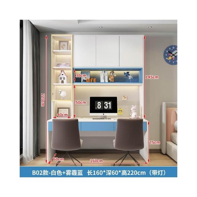 實木雙人書桌書架組合輕奢現代電腦桌書櫃一體臥室加長兒童學習桌